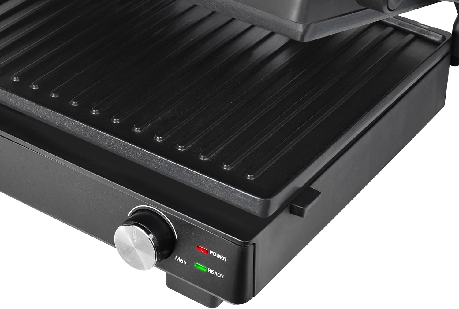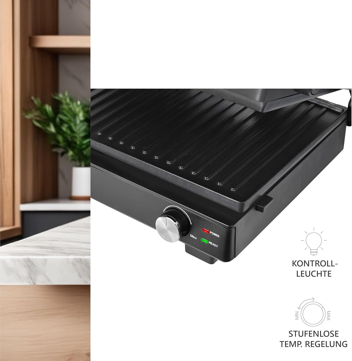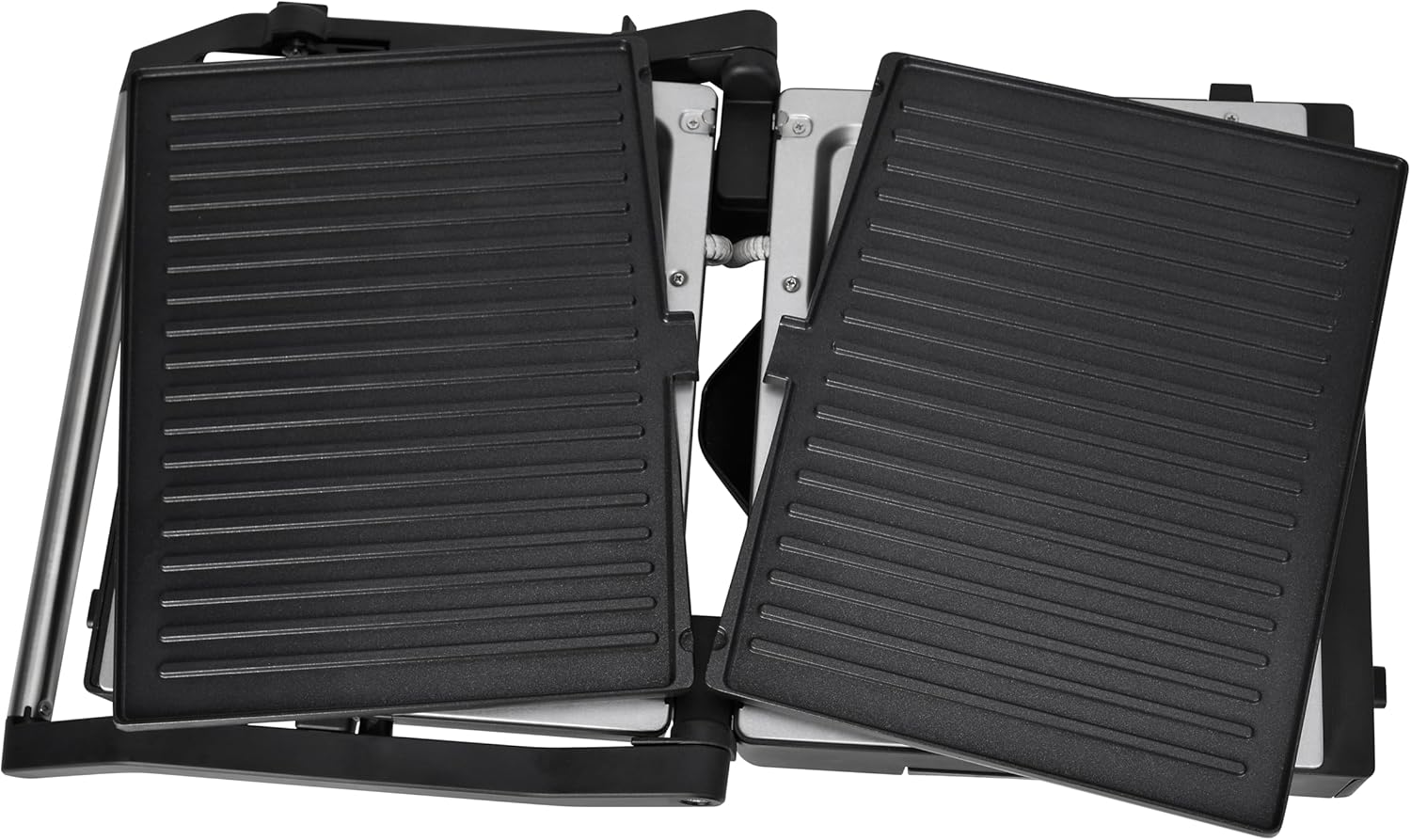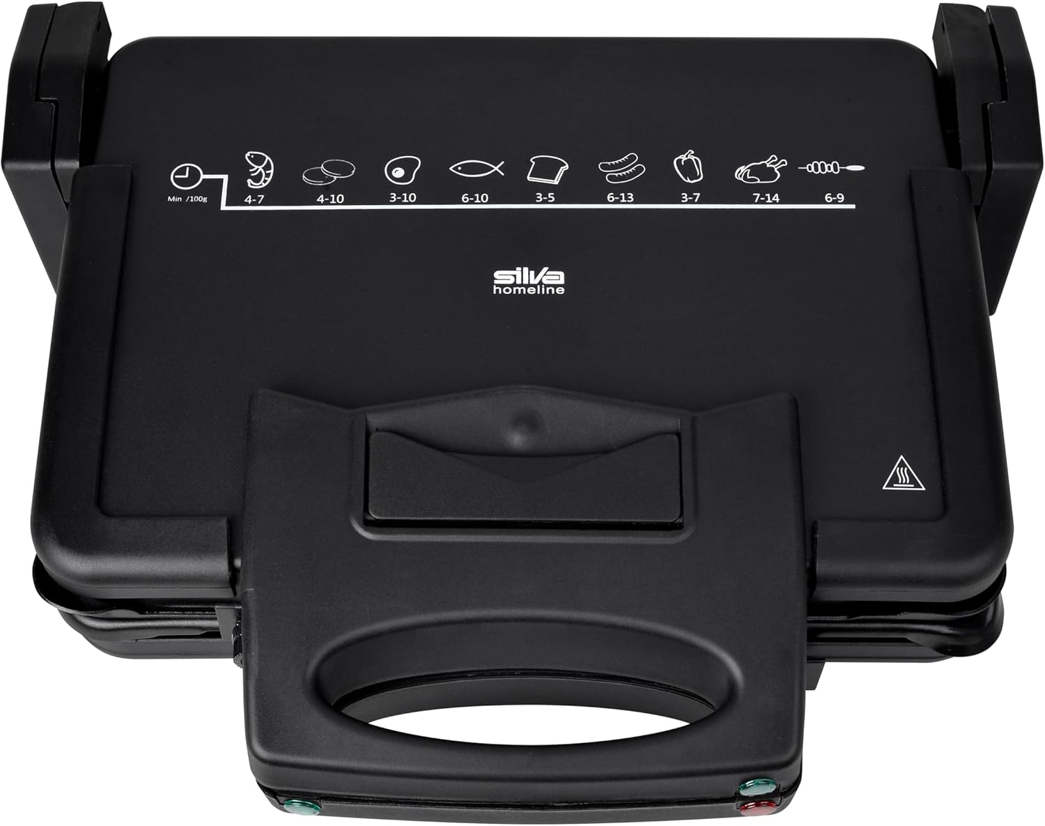 Със Silva Homeline KG 2410 можете да се насладите на максимална гъвкавост при печене на скара. Два отделни термостата позволяват прецизни настройки на температурата за различни нужди на барбекюто. Използвайте грила за едностранно или двустранно печене на скара и се възползвайте от практичната функция за печене за вкусно разтопено сирене. Функцията за сгъване на 180° превръща контактния грил в настолна скара, идеална за социални събирания. В допълнение, вграденото място за съхранение на кабела осигурява спретнато съхранение след употреба.