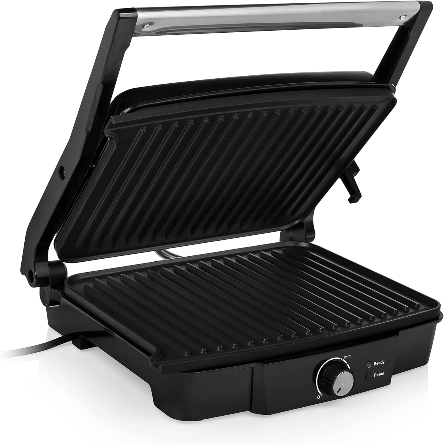 Контактна скара Tristar с отваряне на 180° и повърхност за печене 29 x 23,5 см / може да се използва и като настолна скара, 2000 вата, GR-2853, черна