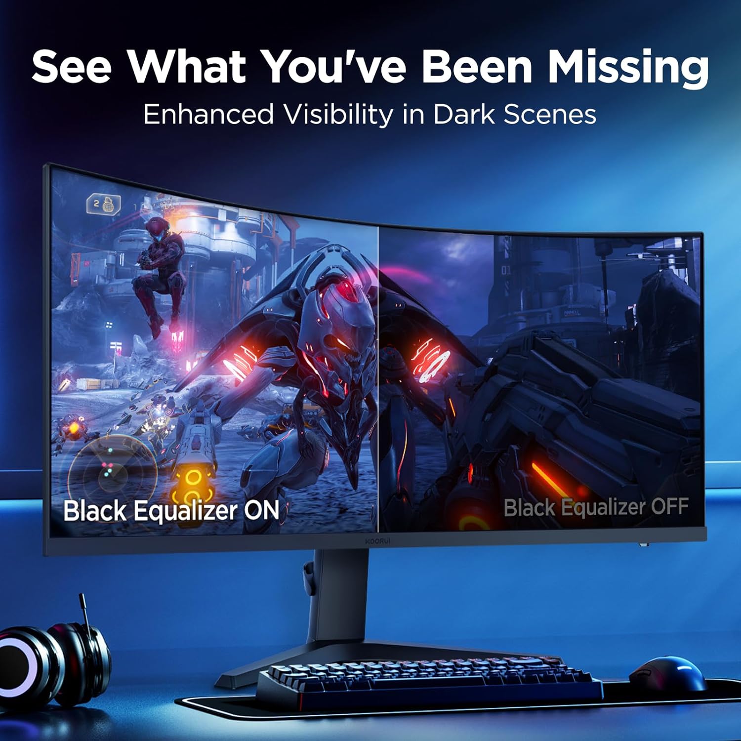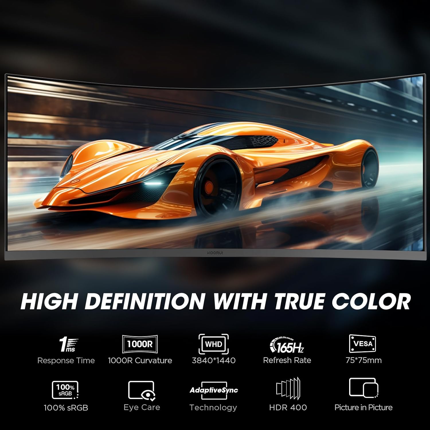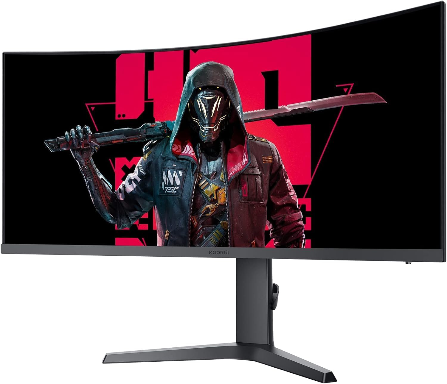 KOORUI 34E6UC 34-инчов ултраширок извит геймърски монитор, компютърен екран 165Hz, 1MS HDR 400, 1000R, UWQHD 3440x1440, адаптивна синхронизация, 2xHDMI и Display Port, VESA 75x75mm, DCI-P3 90% регулируема височина