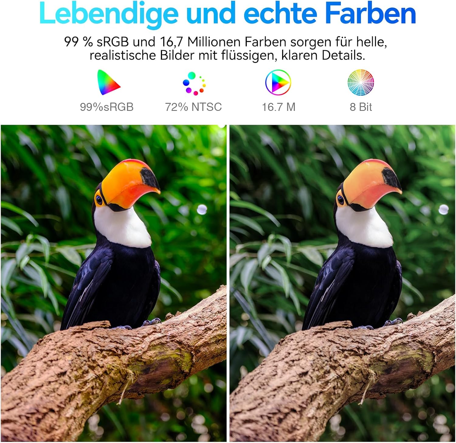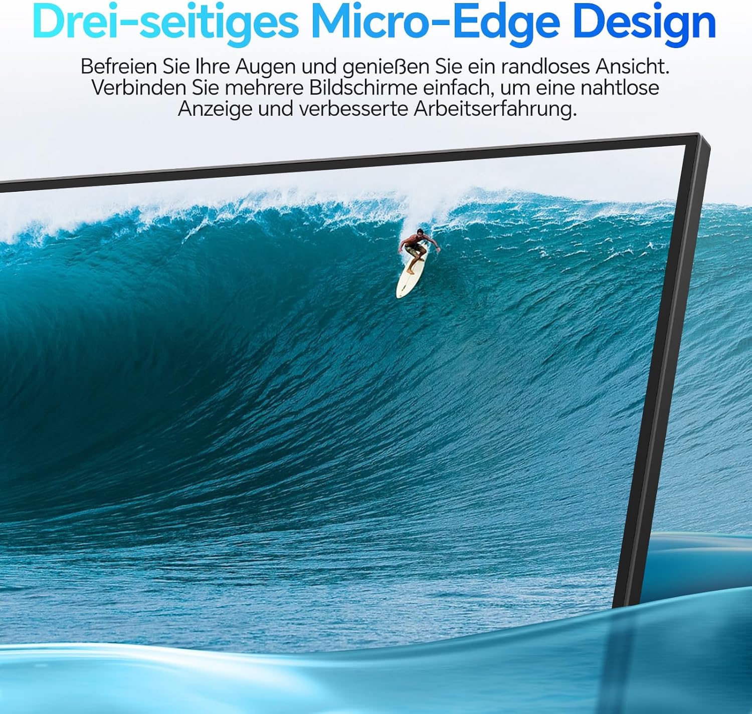 • [Тристранен дизайн с микрорамка] Насладете се на впечатляваща гледка без рамки благодарение на тристранния дизайн с микрорамка. Мониторът KOORUI лесно се свързва с множество екрани, което позволява безпроблемно гледане за подобрена работа или гейминг конфигурация.