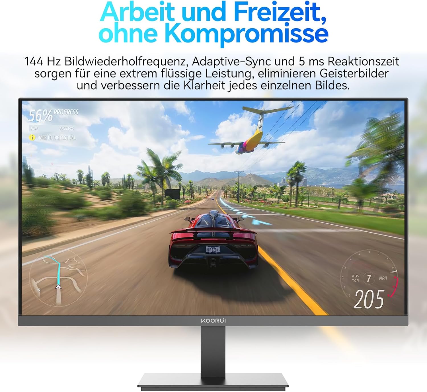 KOORUI E2411K 24-инчов монитор, 144Hz FHD IPS компютърен монитор, 99% SRGB адаптивна синхронизация, екран за грижа за очите, VESA 100 x 100 мм
