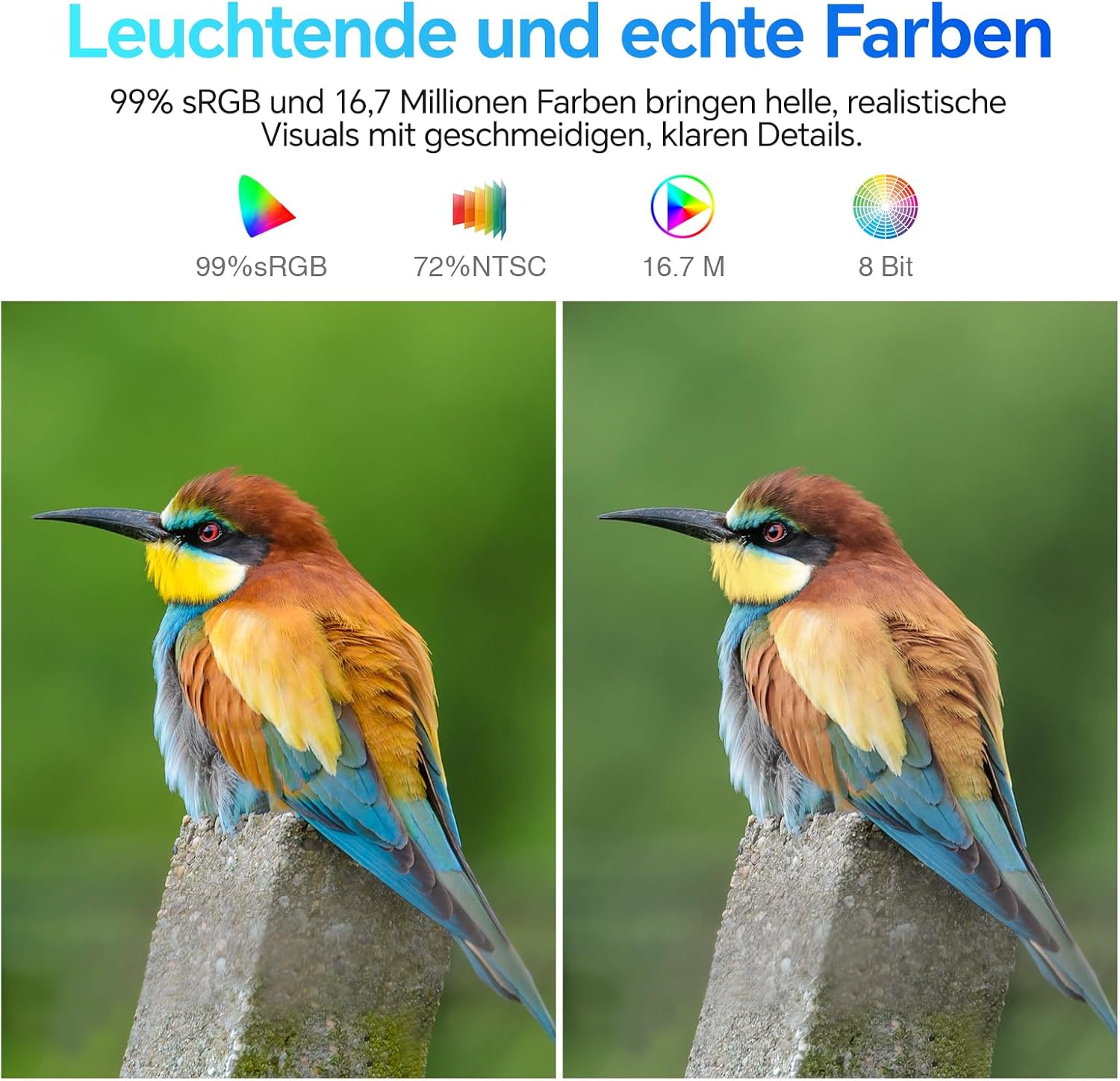 • [24-инчов ултратънък дисплей с Full HD] 24-инчовият монитор KOORUI предлага зашеметяваща резолюция от 1920 x 1080 на ултратънък екран, който осигурява остри, детайлни изображения и живи цветове за подобрено зрително изживяване в тънък дизайн.