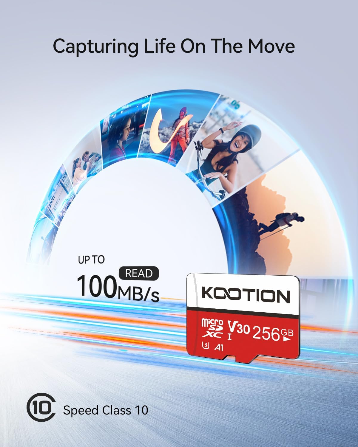 KOOTION 256GB Micro SD карта UHS-I карта с памет U3 MicroSDXC Mini SD карта 256G карта с памет Карта с памет SD карта (A1 V30 4K) е до 100MB/s, карта с памет SDXC карта за мобилни телефони, камери, таблети