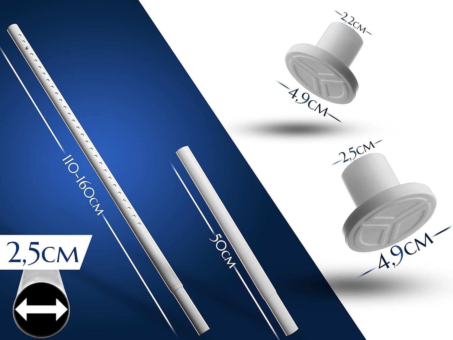 • Стабилност: Останете в безопасност с противоплъзгащи постелки 2.0 и превъзходна конструкция, която гарантира, че вашата завеса ще остане на мястото си на всяка повърхност. Нашият телескопичен прът е изработен от най-съвременни материали за максимална функционалност и издръжливост.