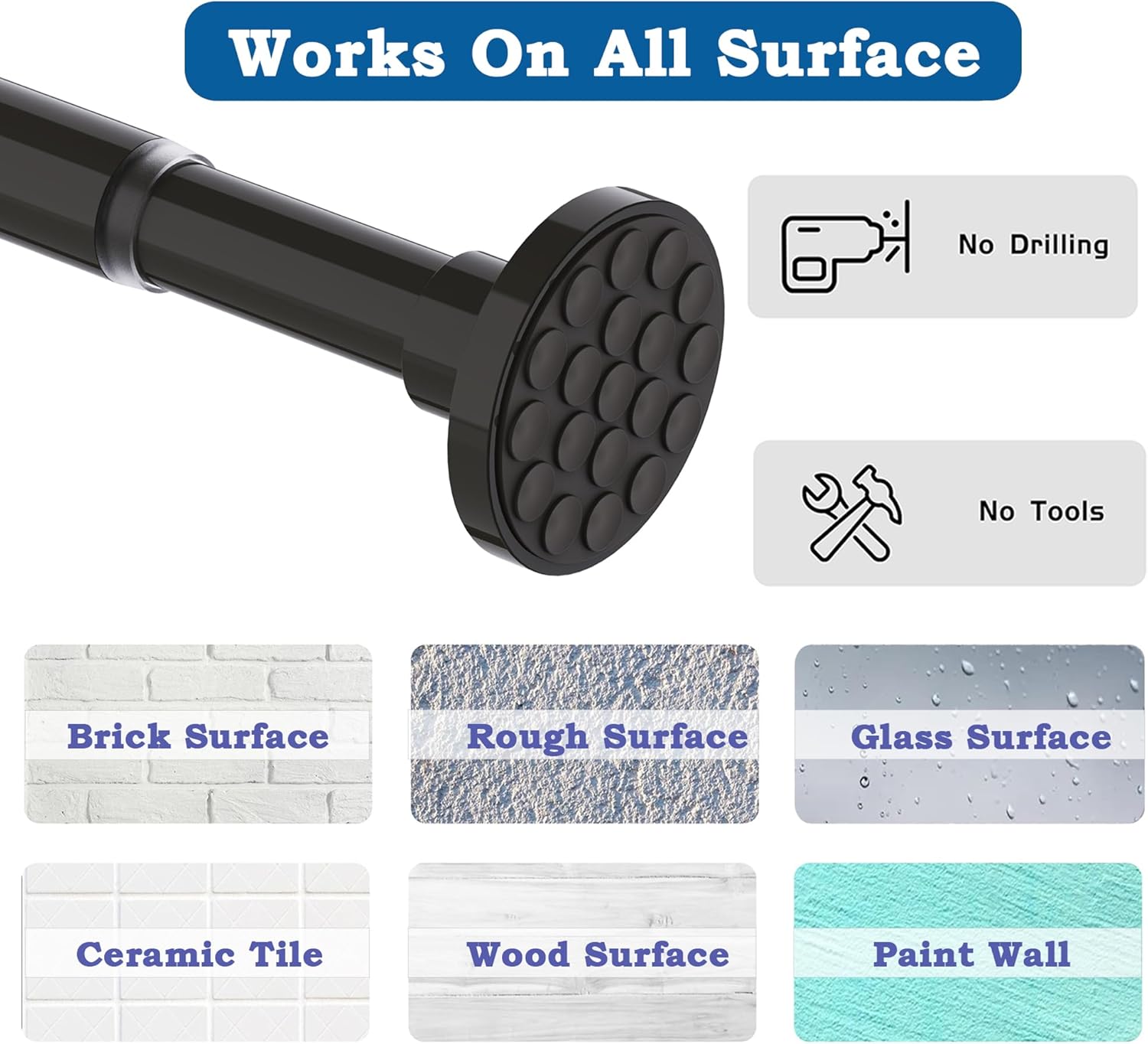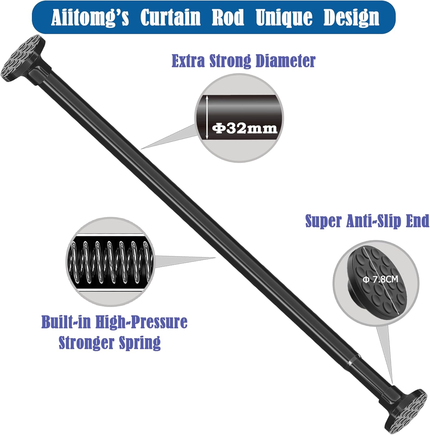 • Неплъзгаща се и ръждясваща: Стълбът за душ завеса Aiitomg е проектиран с деликатна и неплъзгаща се глава с диаметър 7,8 см, която е изработена от мек и неплъзгащ се дизайн и е изработена от висококачествена боя, за да предпази от ръжда.