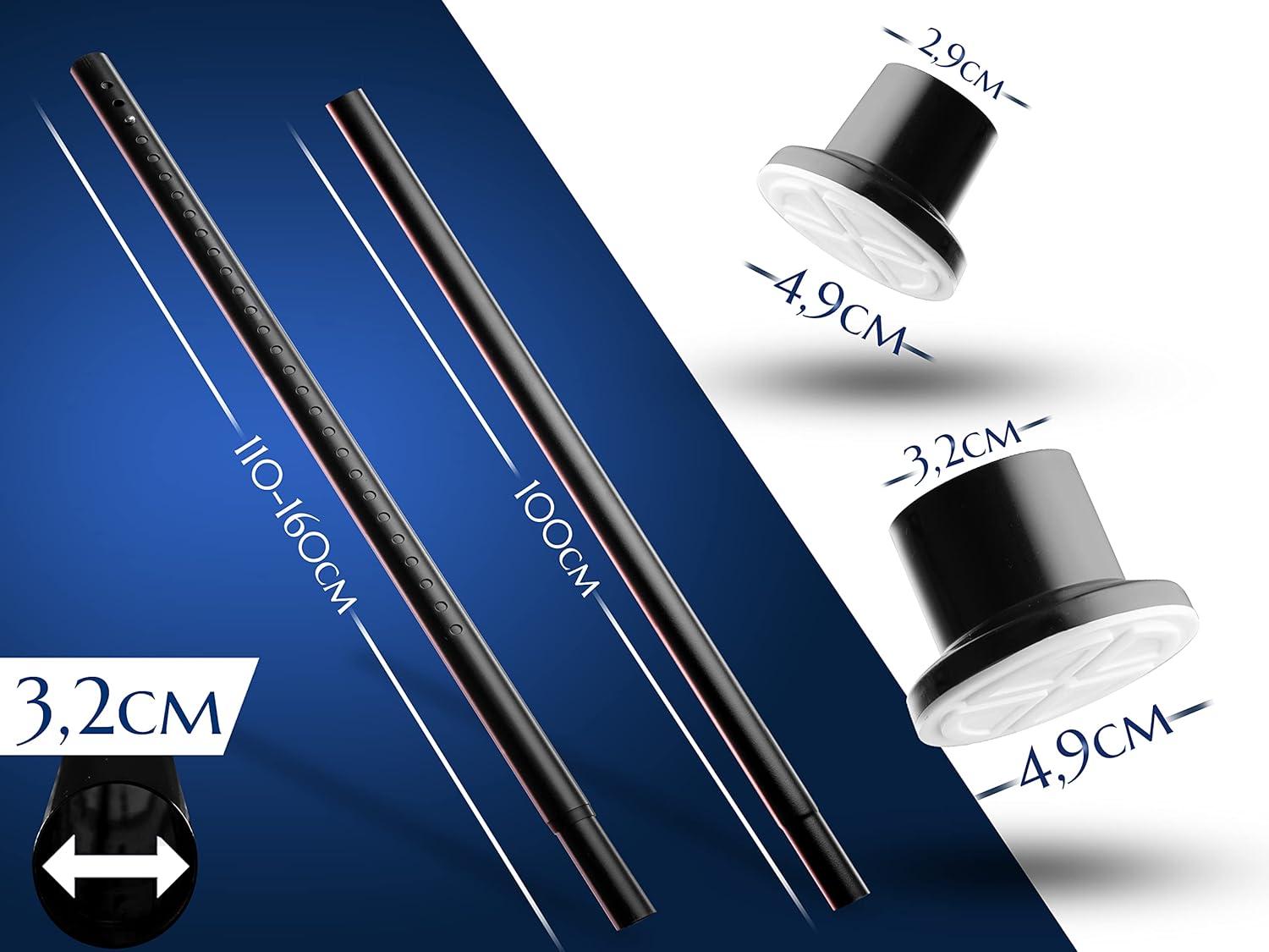 • Стабилност: Останете в безопасност с противоплъзгащи постелки 2.0 и превъзходна конструкция, която гарантира, че вашата завеса ще остане на мястото си на всяка повърхност. Нашият телескопичен прът е изработен от най-съвременни материали за максимална функционалност и издръжливост.