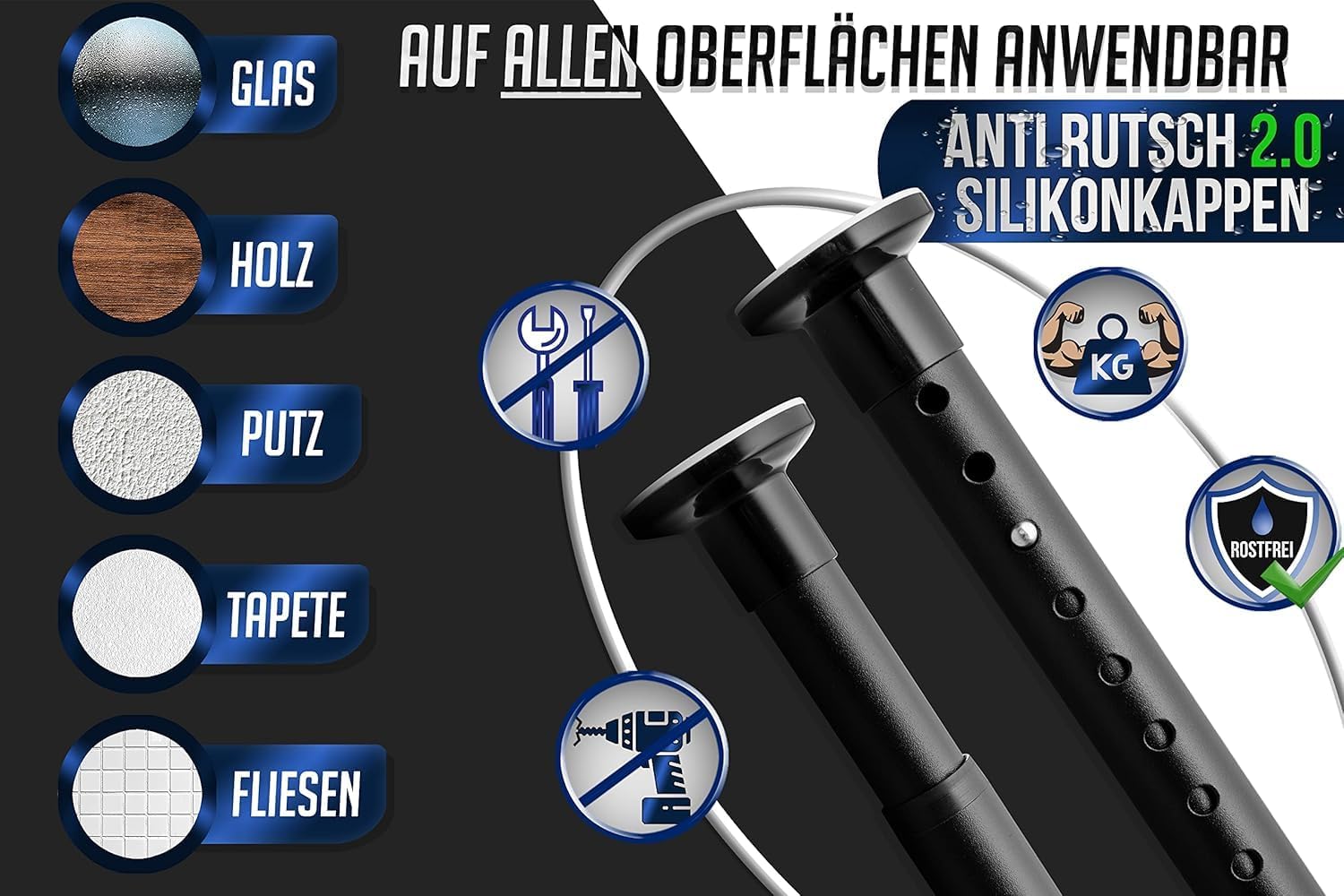 • Стабилност: Останете в безопасност с противоплъзгащи постелки 2.0 и превъзходна конструкция, която гарантира, че вашата завеса ще остане на мястото си на всяка повърхност. Нашият телескопичен прът е изработен от най-съвременни материали за максимална функционалност и издръжливост.