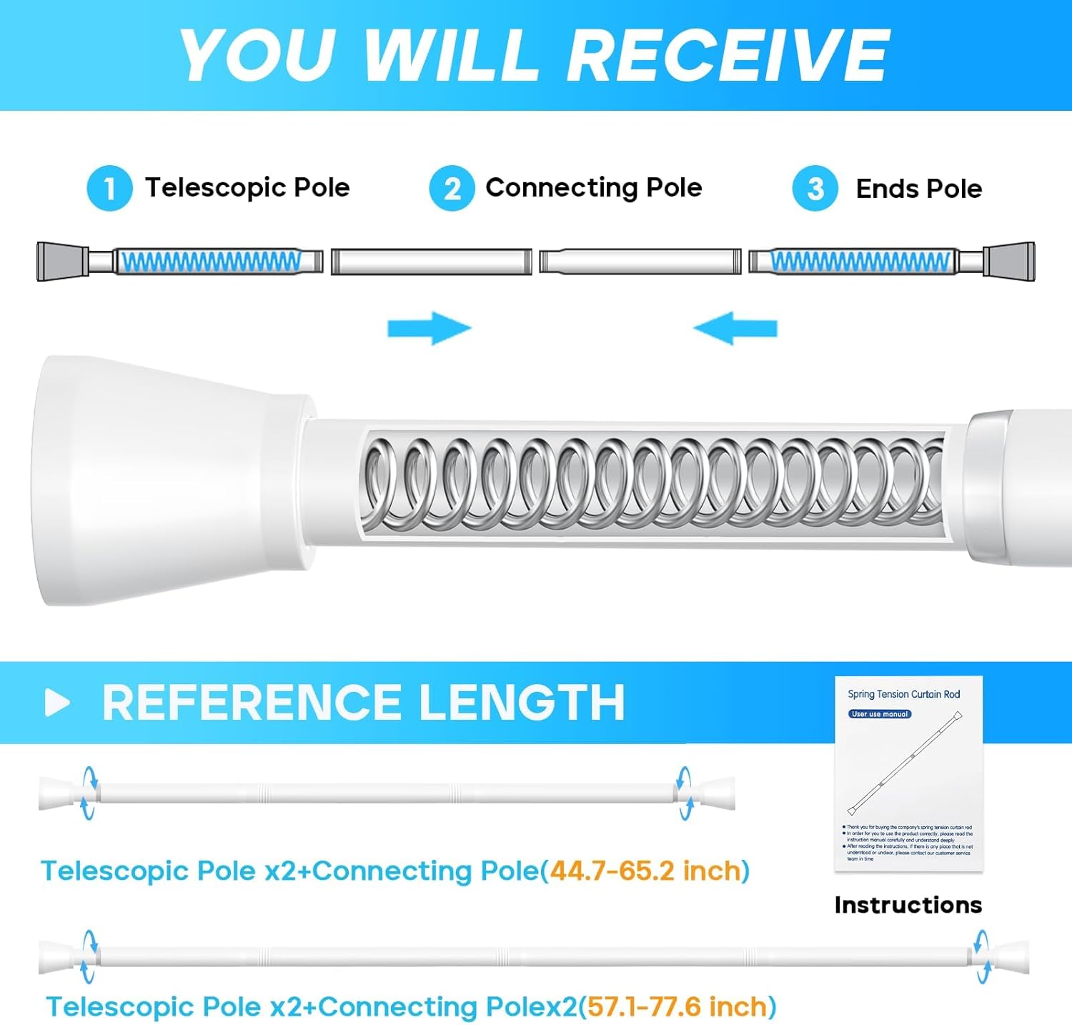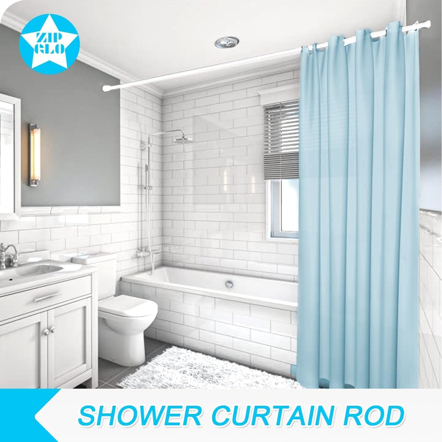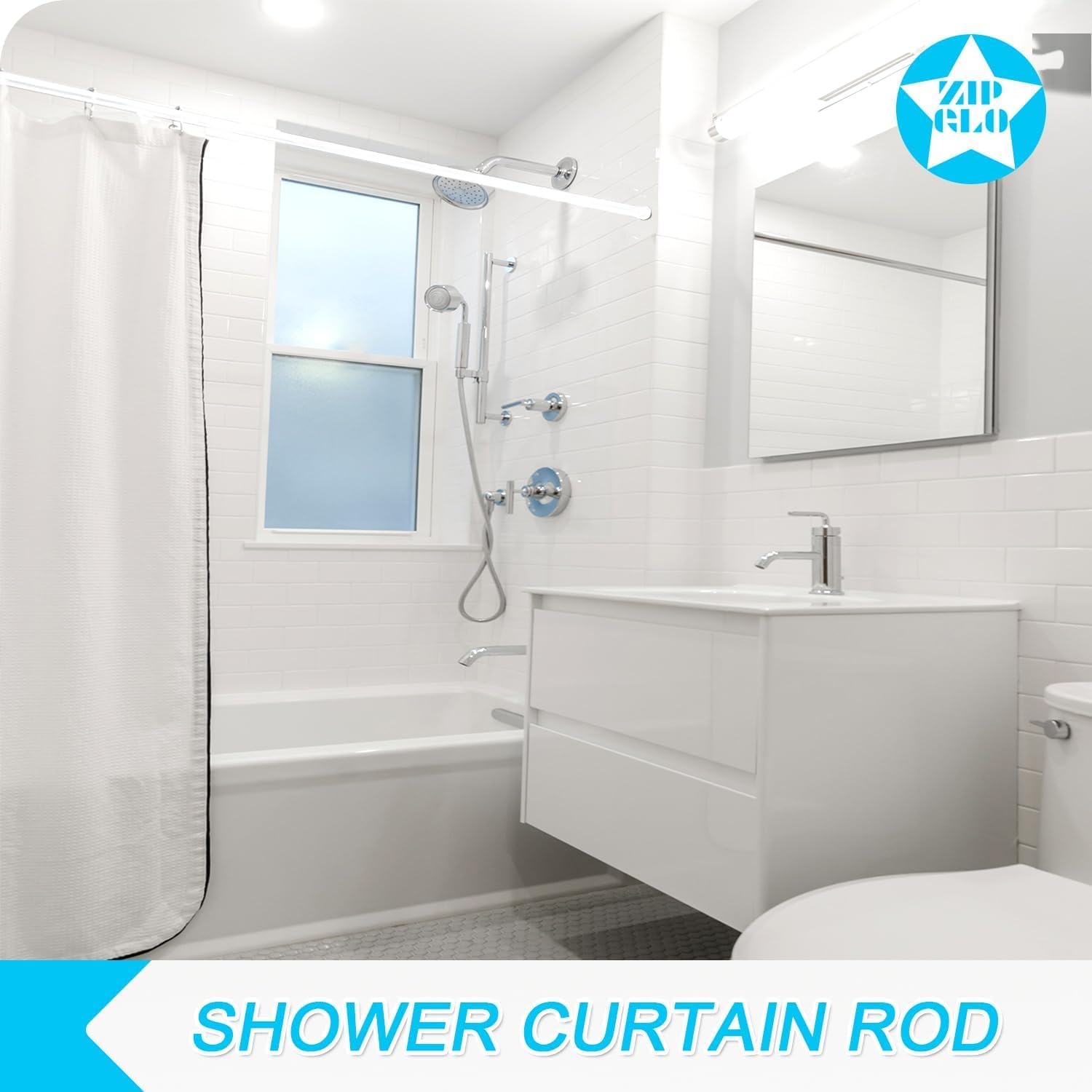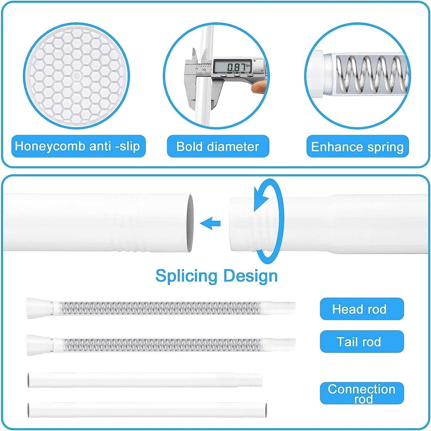 Корниза за завеса за душ, бяла, 114 до 190 см, 2 части, пружинна корниза за завеса, корниза за душ, неплъзгаща се корниза за завеса за душ, 1 брой за прозорци, без пробиване, регулируеми опъващи пръти за завеси, прозорец