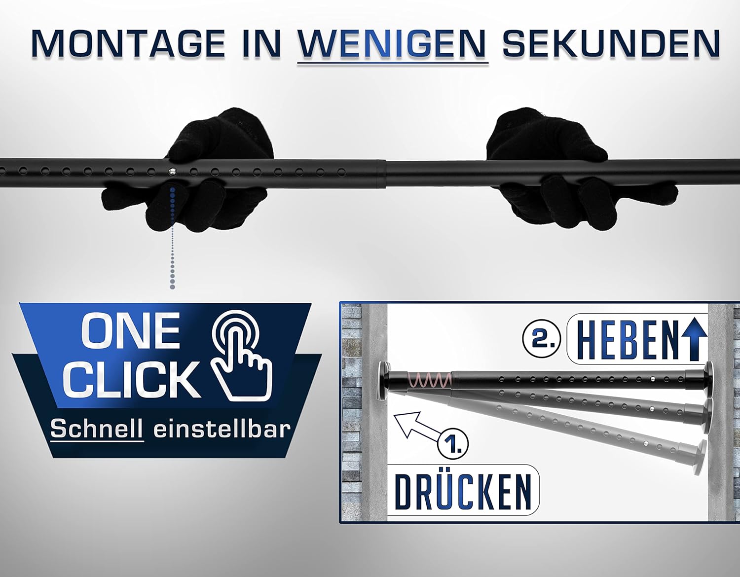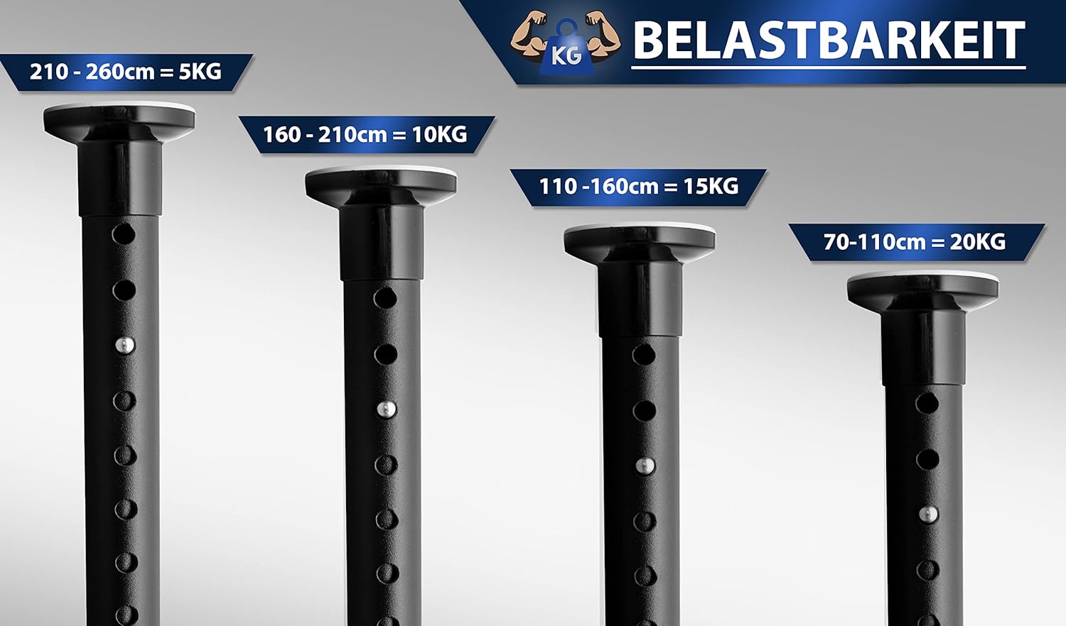 • Лесен монтаж и универсално прилягане: трансформирайте всяка стая за минути с този регулируем прът за опъване без пробиване - не са необходими инструменти. Телескопичният прът за завеси се регулира безпроблемно до желаната дължина и гарантира перфектно прилягане навсякъде, от кухнята до банята. Изпитайте простотата на корниз за завеси без пробиване за бързи и безвредни обновявания.