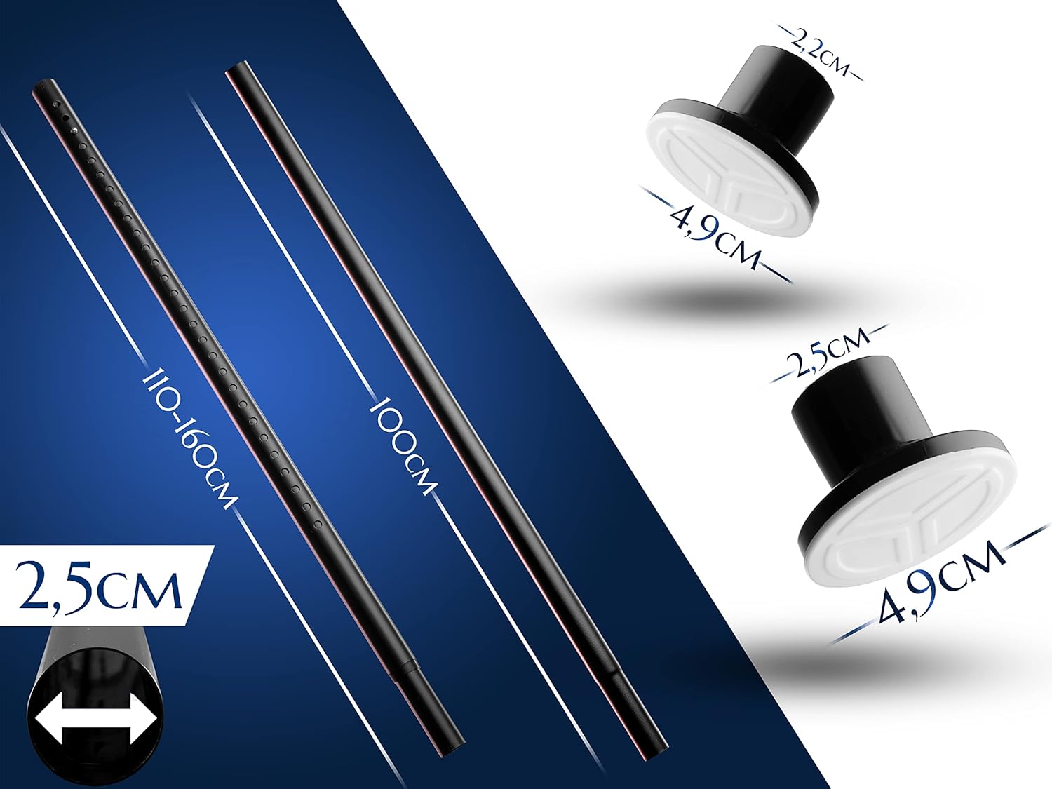 • Стабилност: Останете в безопасност с противоплъзгащи постелки 2.0 и превъзходна конструкция, която гарантира, че вашата завеса ще остане на мястото си на всяка повърхност. Нашият телескопичен прът е изработен от най-съвременни материали за максимална функционалност и издръжливост.