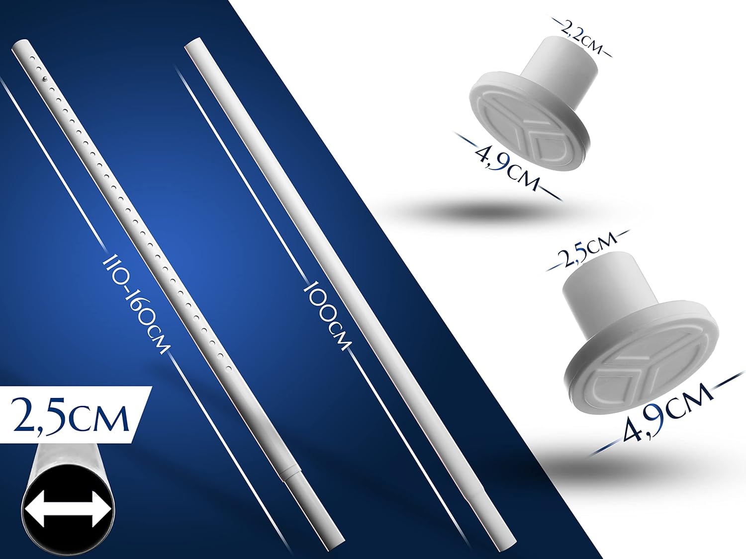 • Стабилност: Останете в безопасност с противоплъзгащи постелки 2.0 и превъзходна конструкция, която гарантира, че вашата завеса ще остане на мястото си на всяка повърхност. Нашият телескопичен прът е изработен от най-съвременни материали за максимална функционалност и издръжливост.