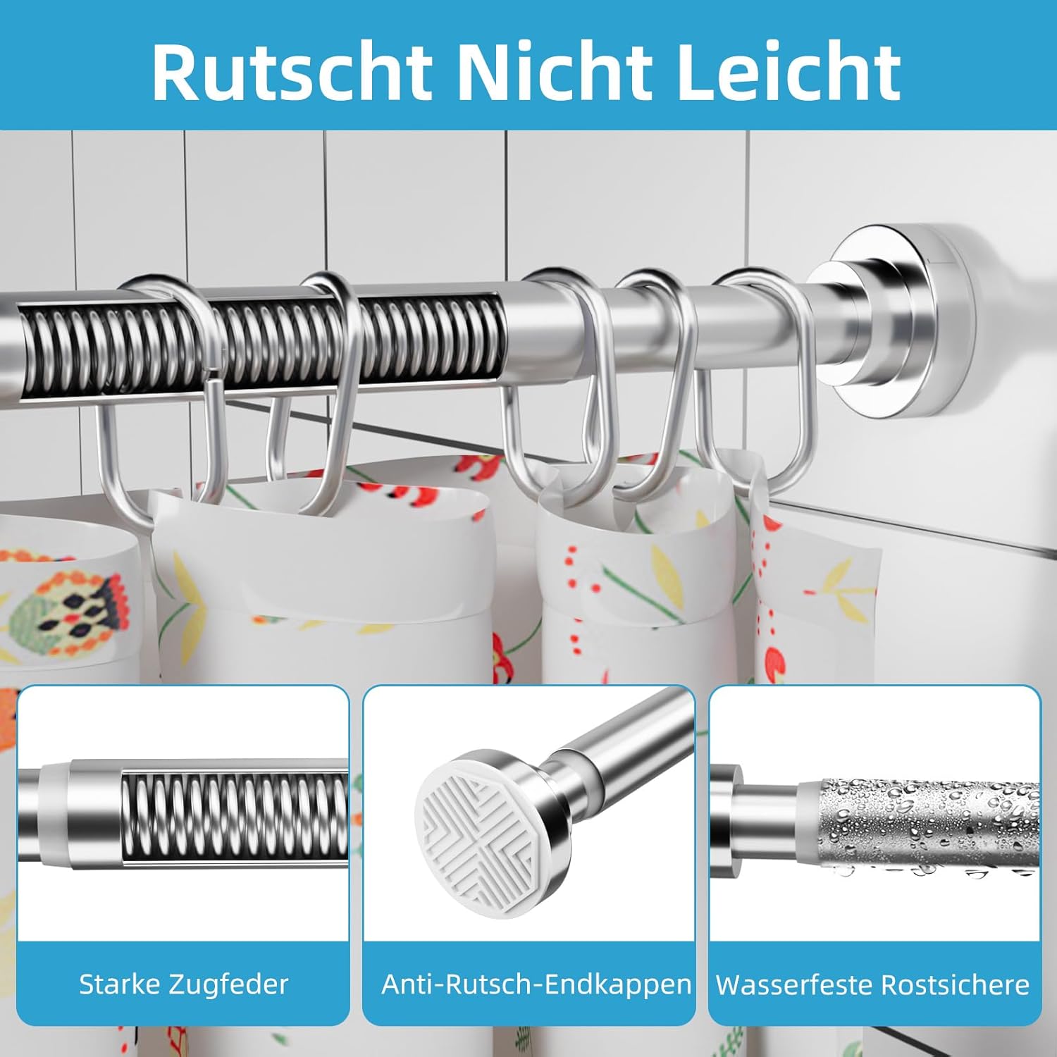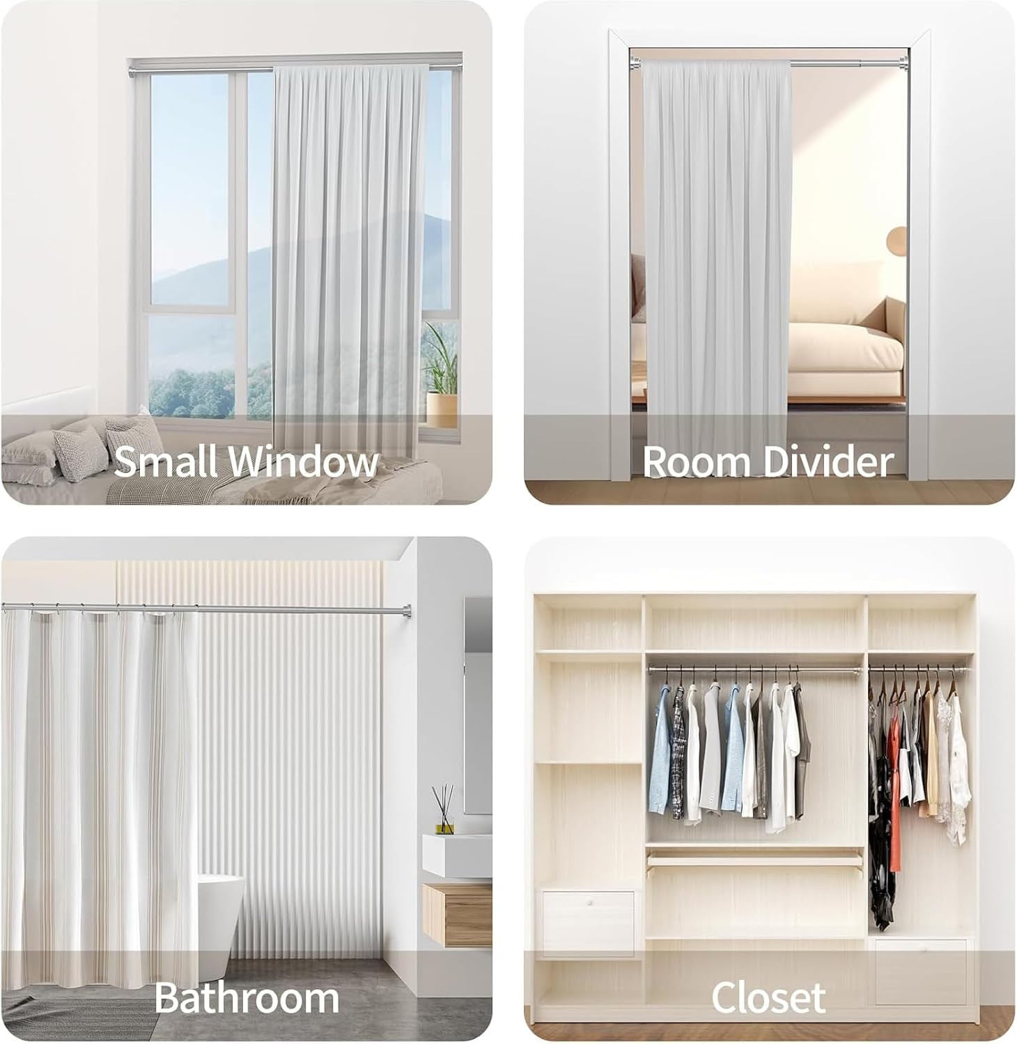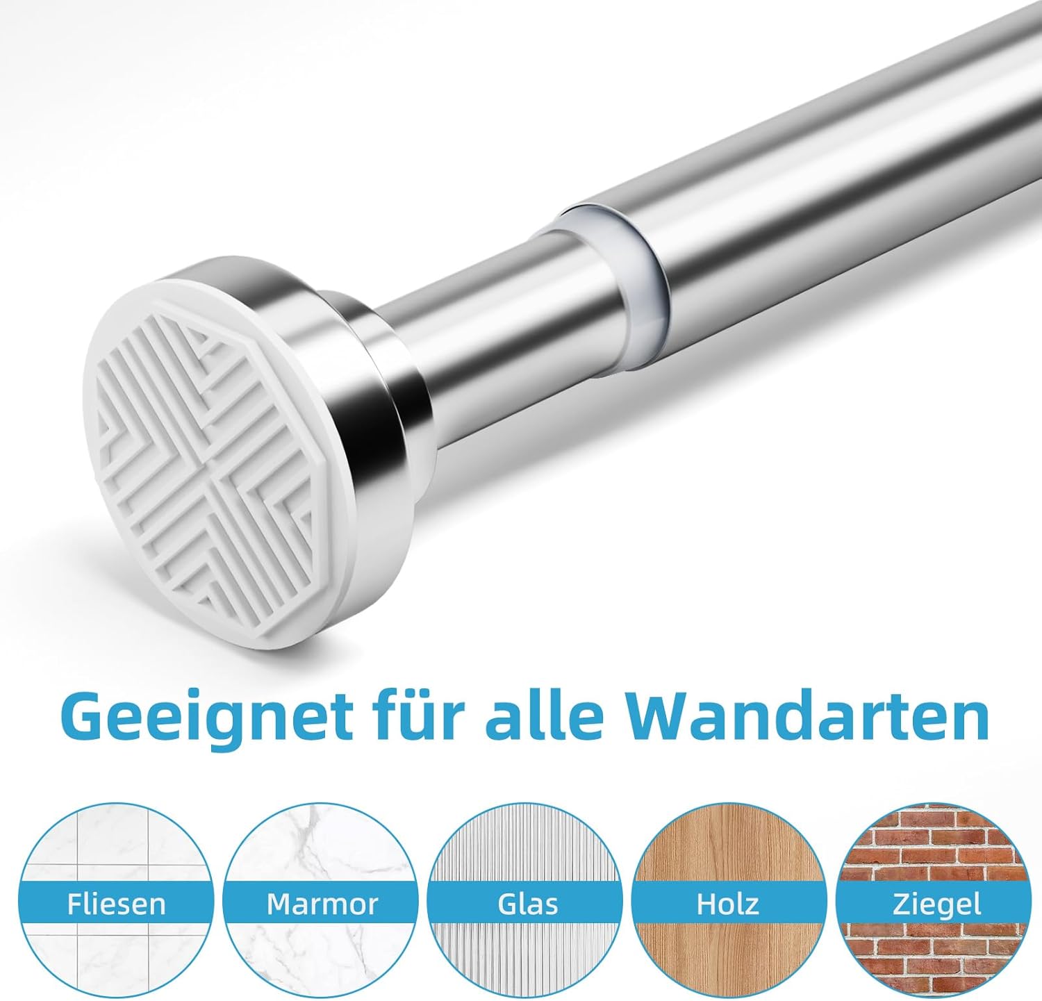• Универсален и многофункционален: не само за душ кабина. Този регулируем опъващ прът е идеален за различни приложения: като корниз за завеси, релса за дрехи или дори като разделител на стая. Използвайте ги в бани, прозорци, гардероби, кухни или дори на открито.
