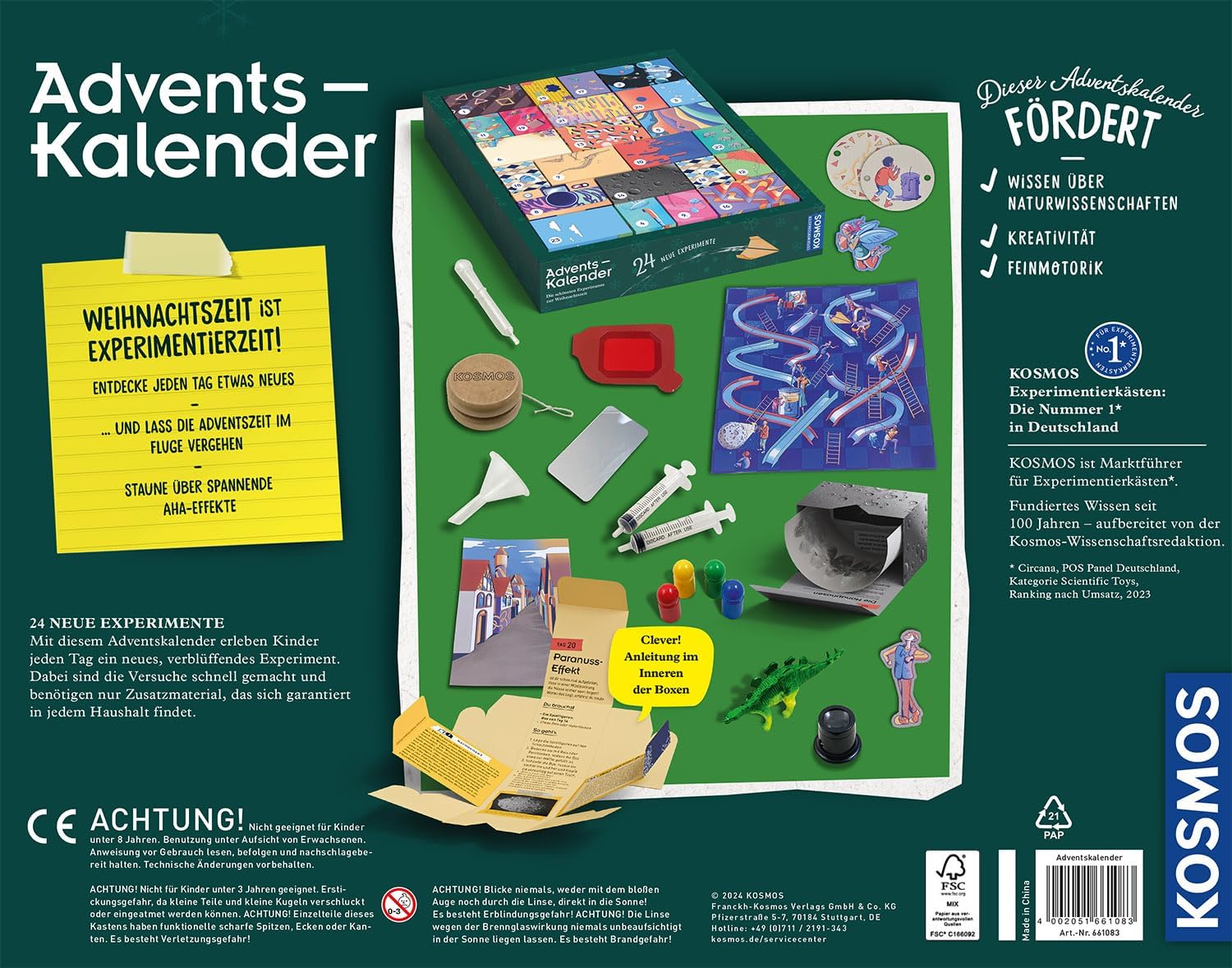 KOSMOS 661083 Експерименти Адвент календар, Най-добрите експерименти за коледния сезон, за 5 минути, за деца на възраст 8-12 години, играчка, наука