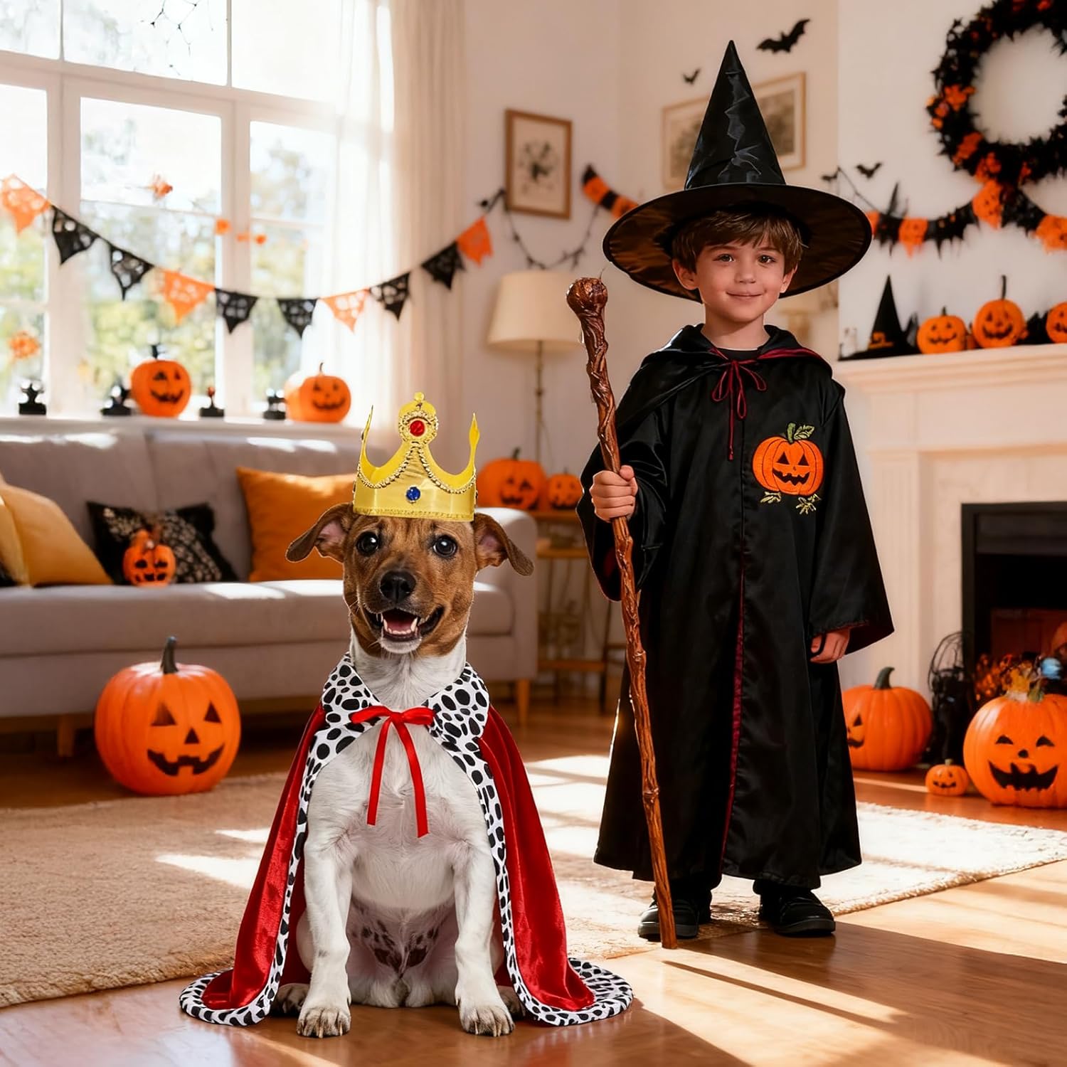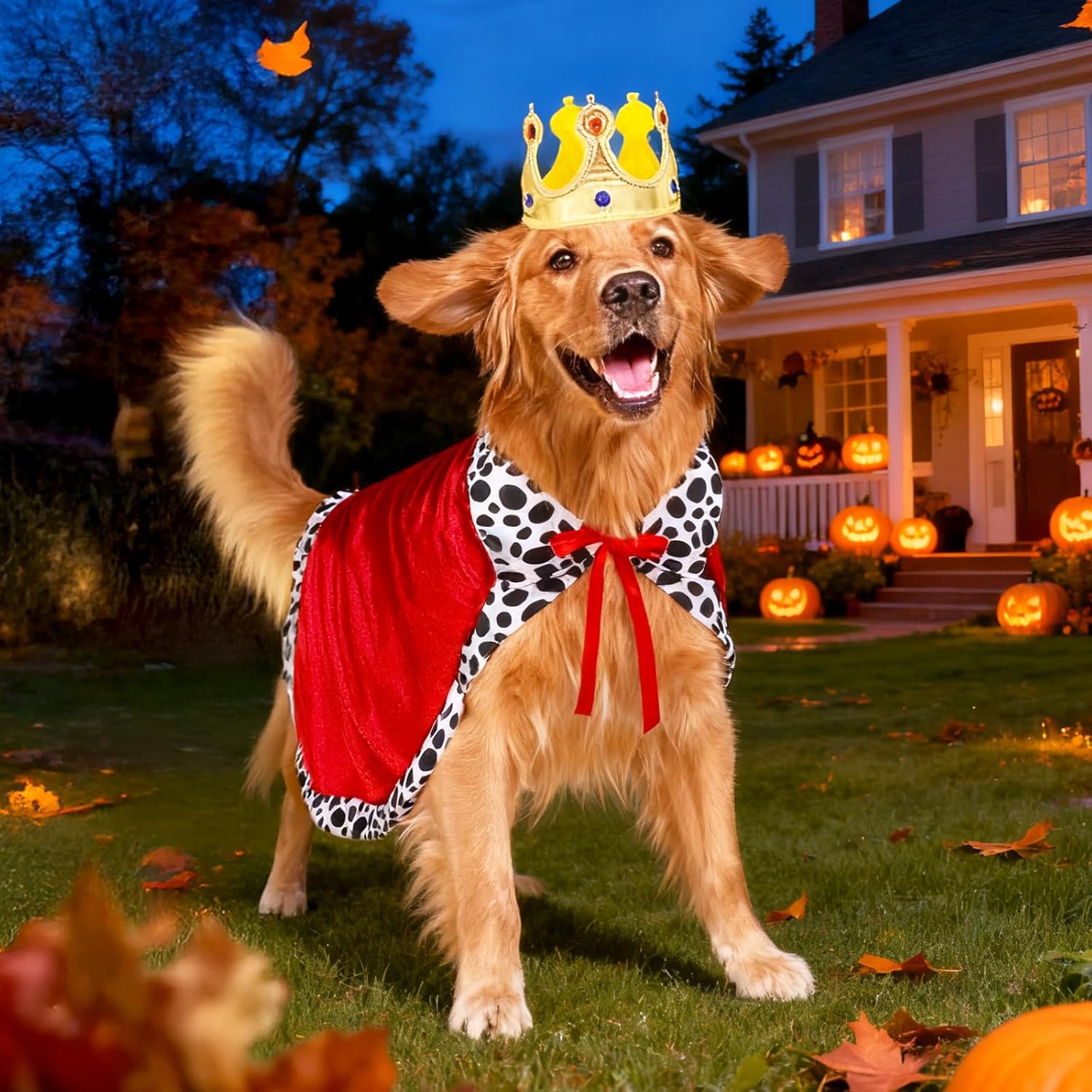 Костюм на кралско куче - Косплей за домашни любимци - Дрехи за тигри, Палто за котки - Суичър с качулка - Екипировки, Дрехи за кучета и котки (L)