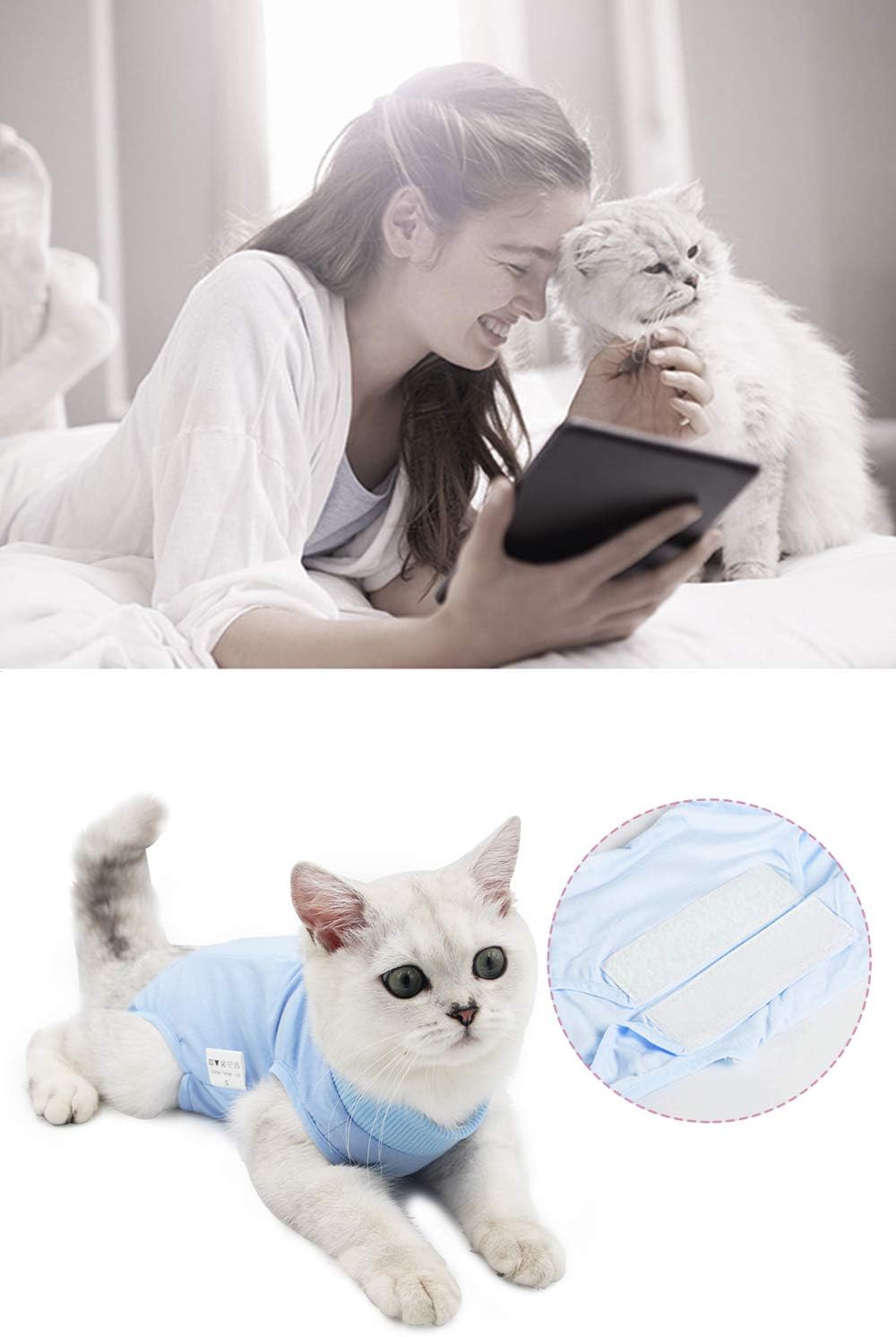 Този артикул е хирургически костюм за котки. Костюмът е професионална алтернатива на конусовидна превръзка за цялото тяло. Висококачественият памучен материал е мек, дишащ и удобен. Освен това е лесен за обличане и събличане и предотвратява кучето ви да облизва и хапе ужилените места.