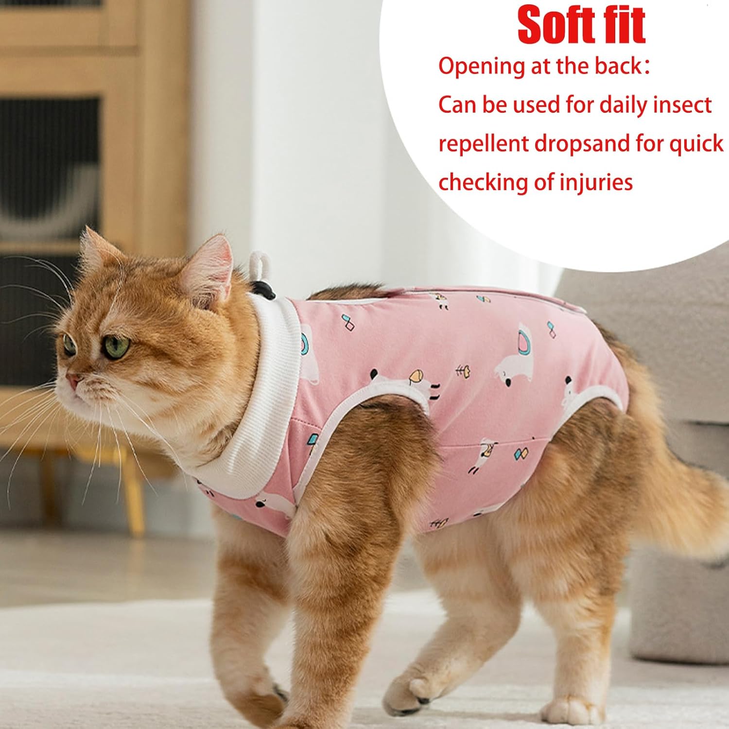 Този хирургически възстановителен костюм за котки замества стресиращите пластмасови конуси, като осигурява цялостна защита на тялото при коремни рани или разрези. Еластичната памучна материя се адаптира към движенията на вашата котка, като същевременно предотвратява раздразнения. Независимо дали вашият домашен любимец се възстановява от кастрация, цезарово сечение или кожно лечение, този универсален костюм осигурява по-безопасен и безстресов процес на оздравяване. Благополучието на вашата котка е в добри ръце (или по-добре да кажем, в страхотен костюм)!