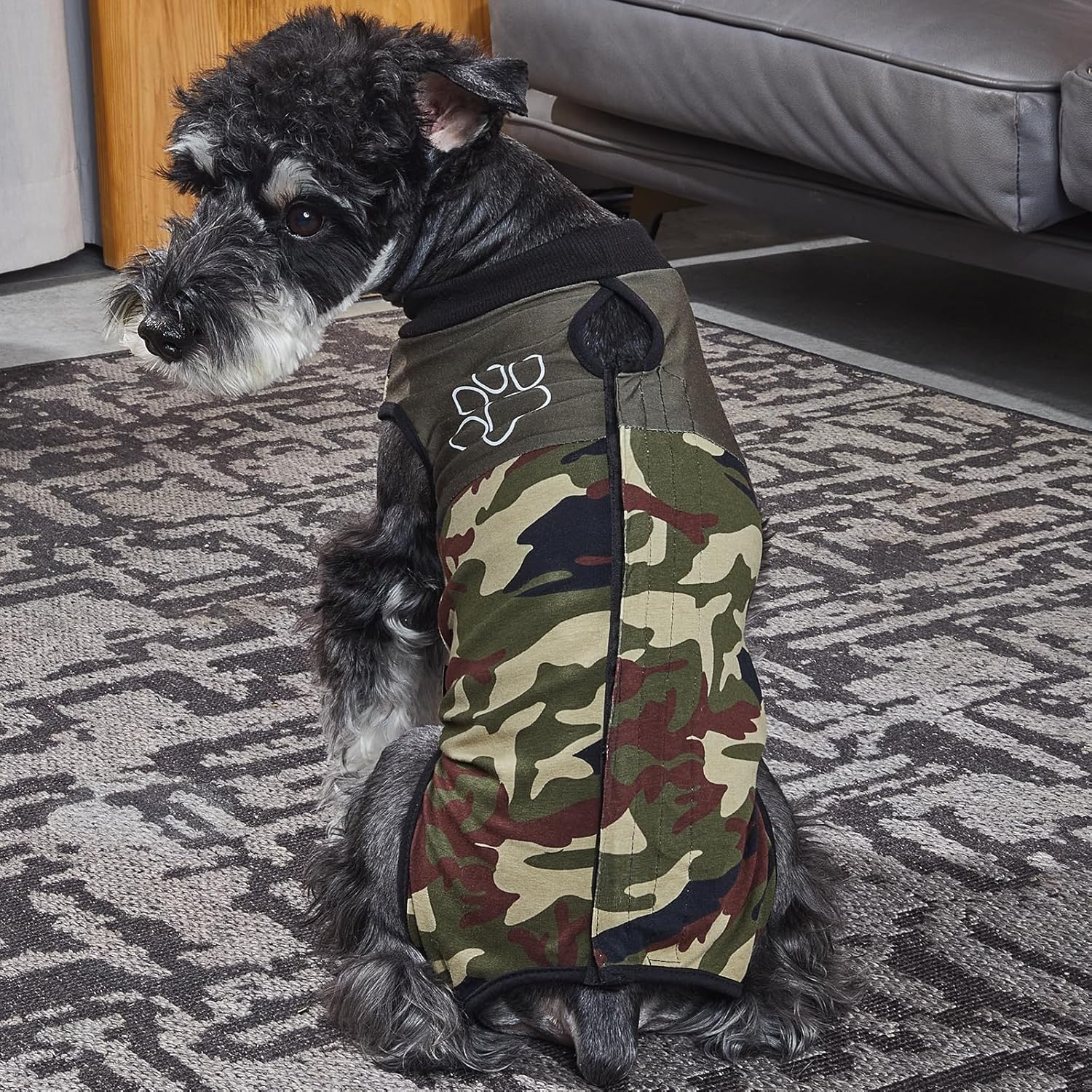 Костюм за възстановяване на кучета Jiupety, регулируем, боди за коремни рани след операция, заместител на E-Collar, размер L, против облизване, хирургически гащеризон, камуфлажен модел