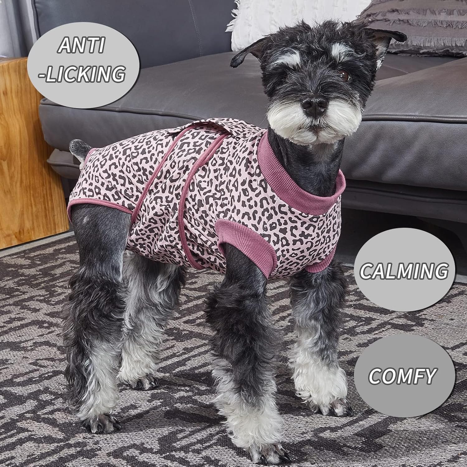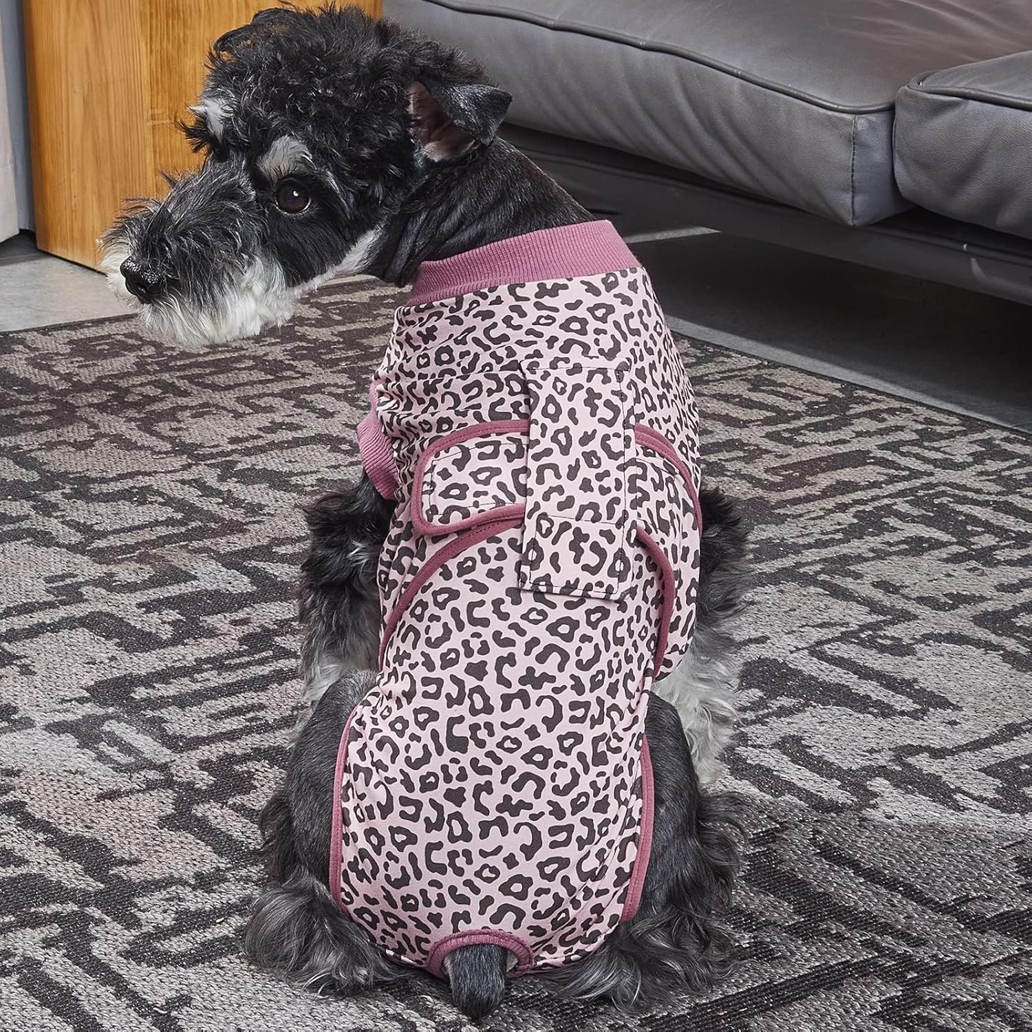 Костюм за възстановяване на кучета Jiupety, регулируем, костюм за следоперативни коремни рани, резервен за електронен нашийник, размер M, против облизване, хирургически гащеризон, розов леопард