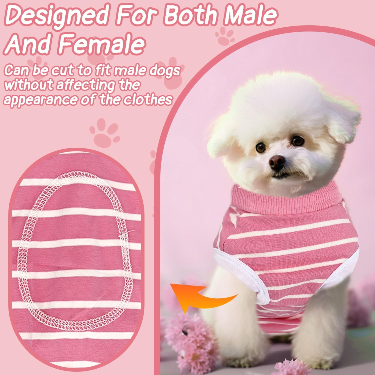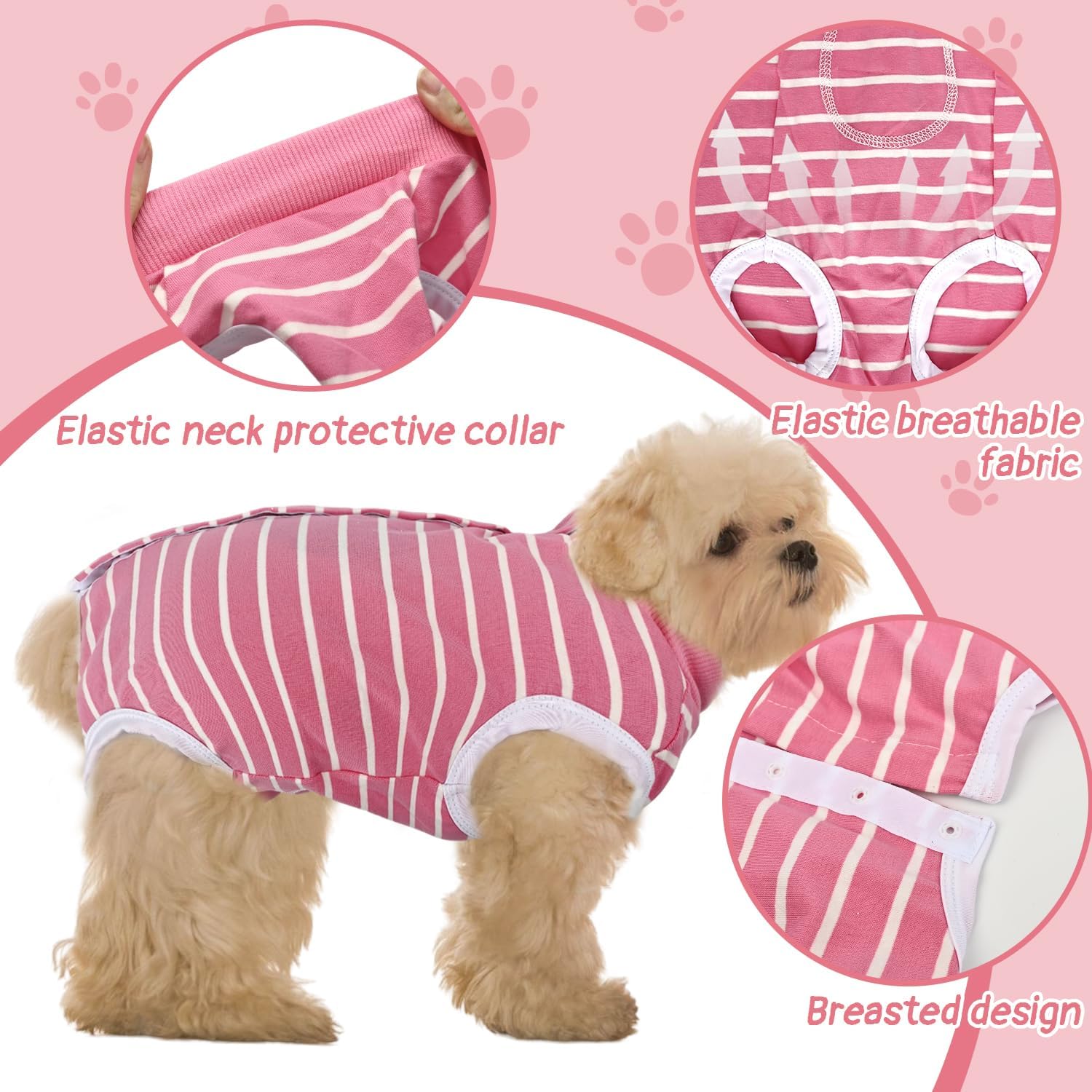 Костюм за възстановяване на кучета след операция, защитен костюм за кучета срещу протичане, мек костюм (розово-бели райета, M)