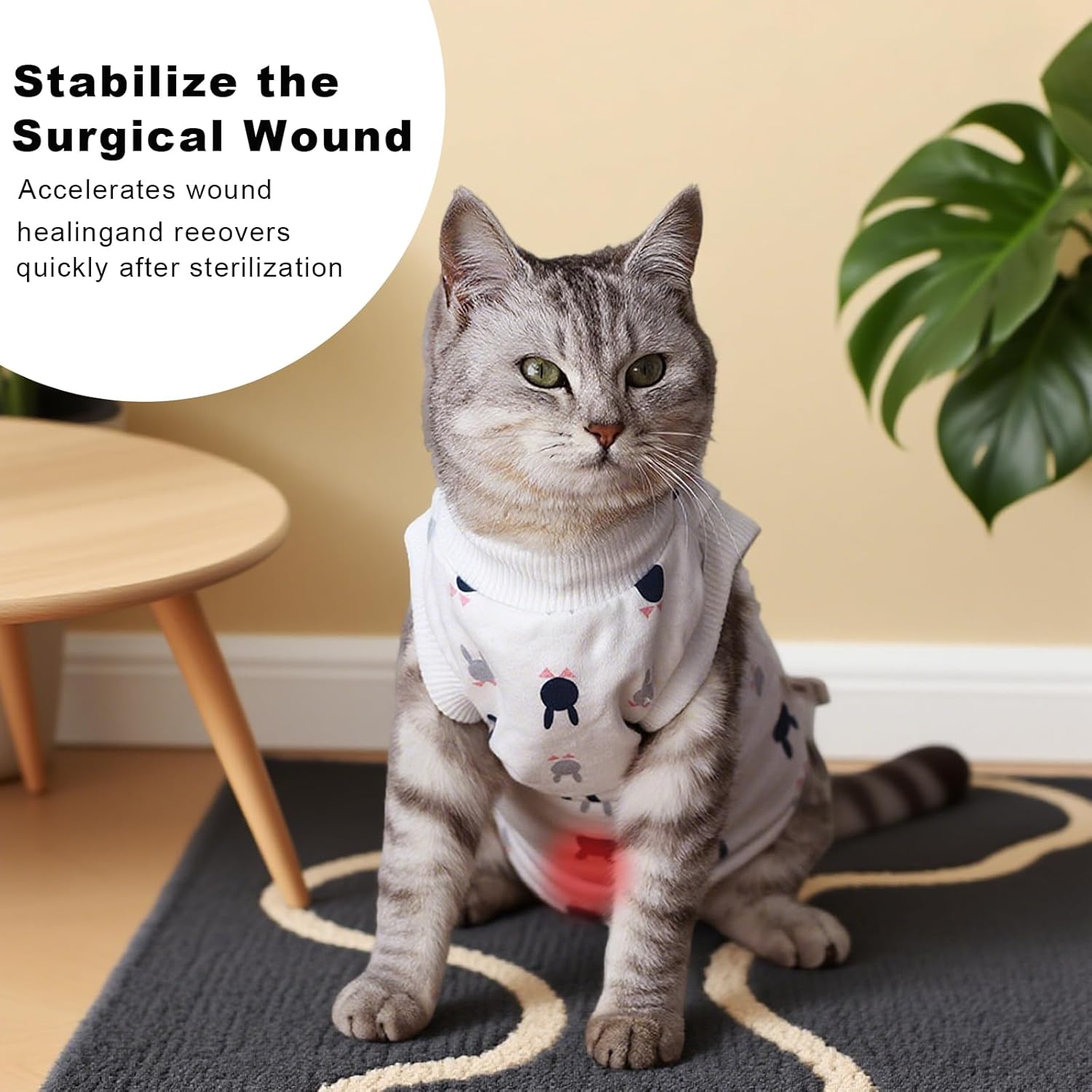 • Следоперативна защита: Като алтернатива на нашийника против протичане, ризата за възстановяване на котки може ефективно да защити раните и превръзките на вашата котка. Блокира чужди тела, влизащи в директен контакт с раната, и ускорява заздравяването на раната след операцията. Тя ефективно помага на домашните любимци да се възстановят.