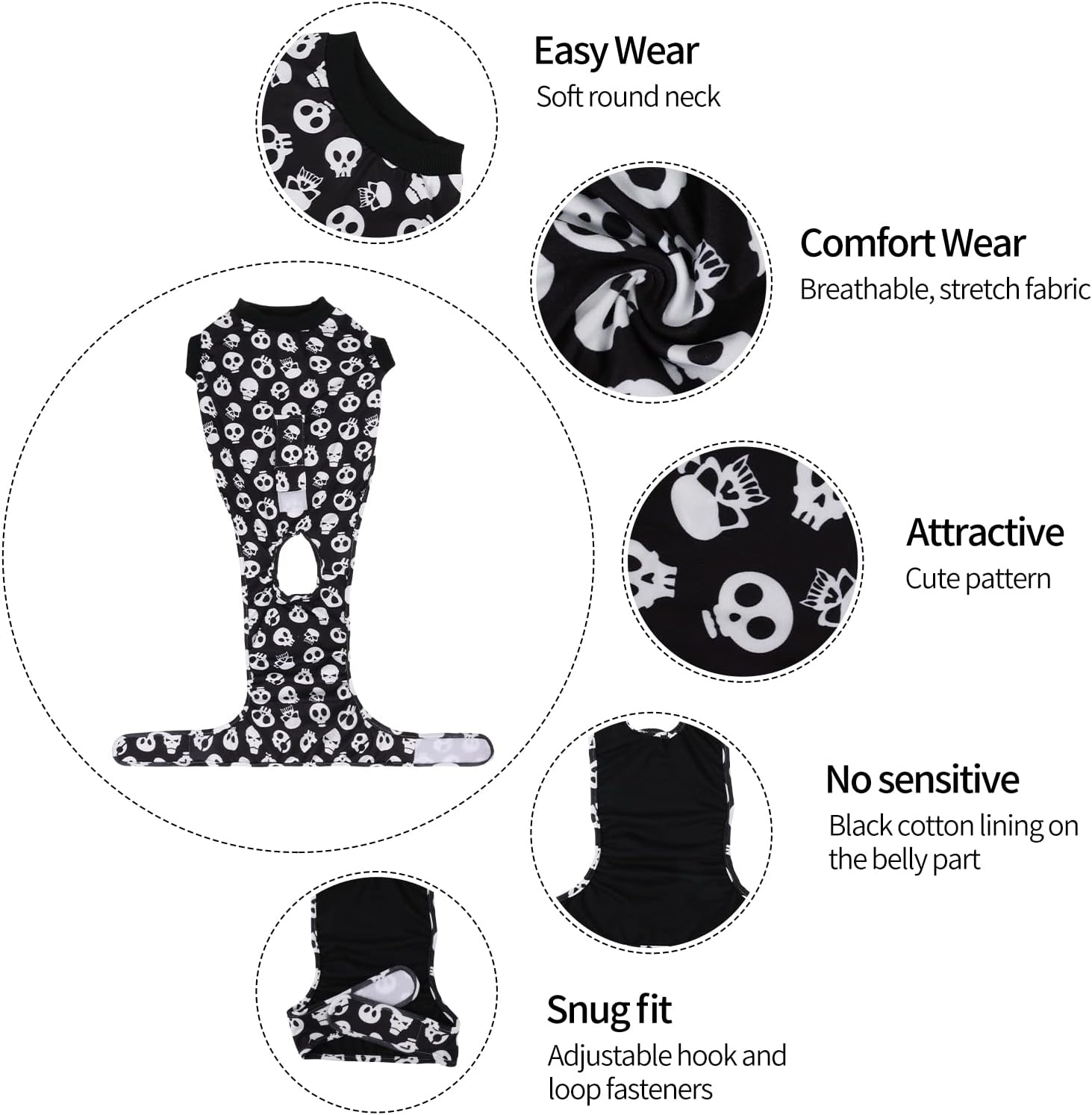 Костюм за възстановяване след хирургично лечение на кучета CuteBone Skulls, хирургичен гащеризон за котки, женски бодита за мъже, предпазващи домашни любимци от облизване на рани SSF05XL-DE