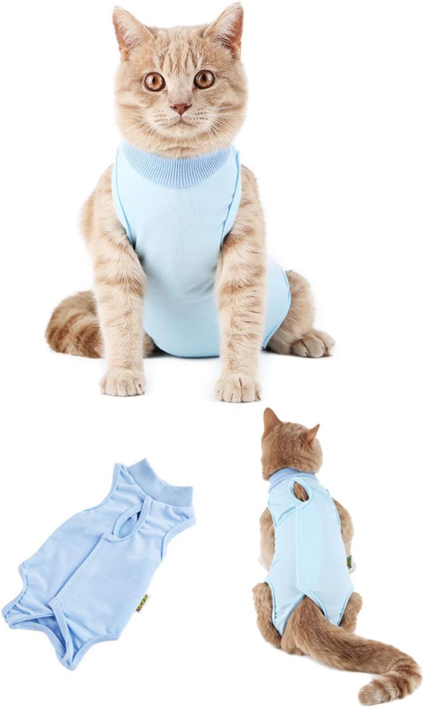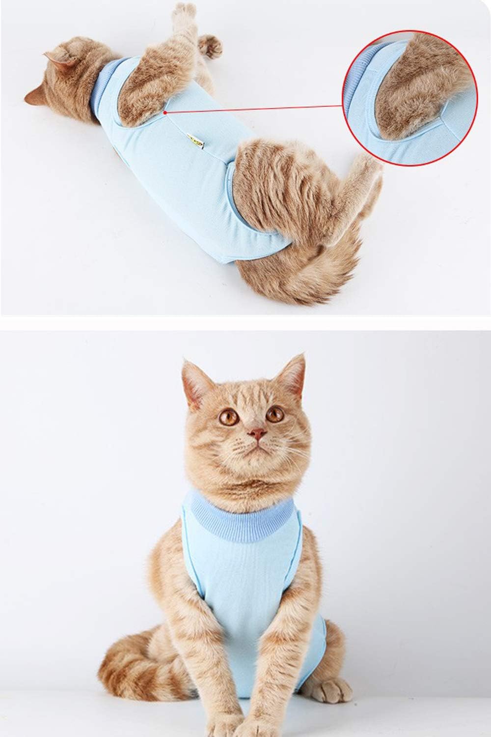 Този артикул е хирургически костюм за котки. Костюмът е професионална алтернатива на конусовидна превръзка за цялото тяло. Висококачественият памучен материал е мек, дишащ и удобен. Освен това е лесен за обличане и събличане и предотвратява кучето ви да облизва и хапе ужилените места.