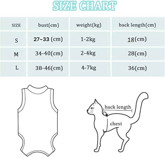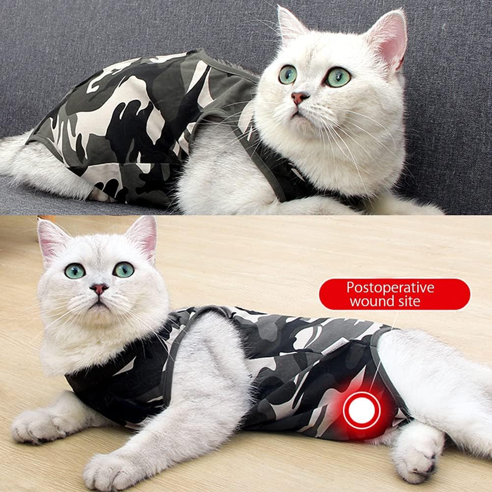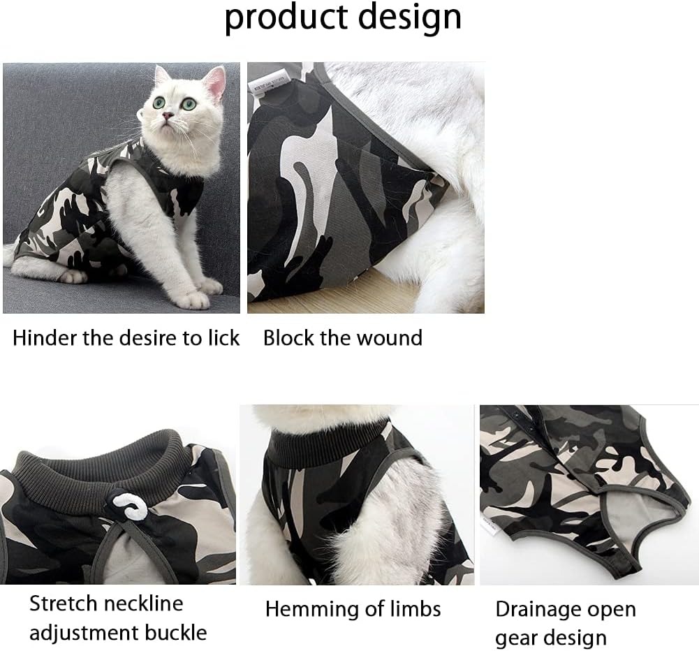 Този артикул е хирургически костюм за котки. Костюмът е професионална алтернатива на конусовидна превръзка за цялото тяло. Висококачественият памучен материал е мек, дишащ и удобен. Освен това е лесен за обличане и събличане и предотвратява кучето ви да облизва и хапе ужилените места.