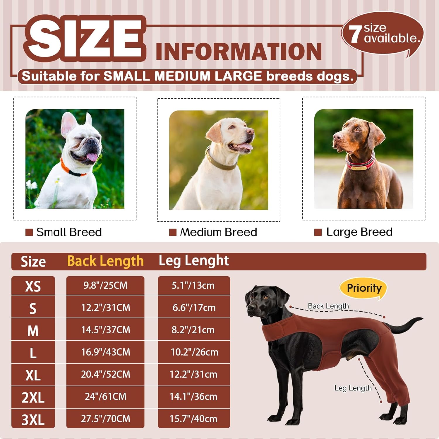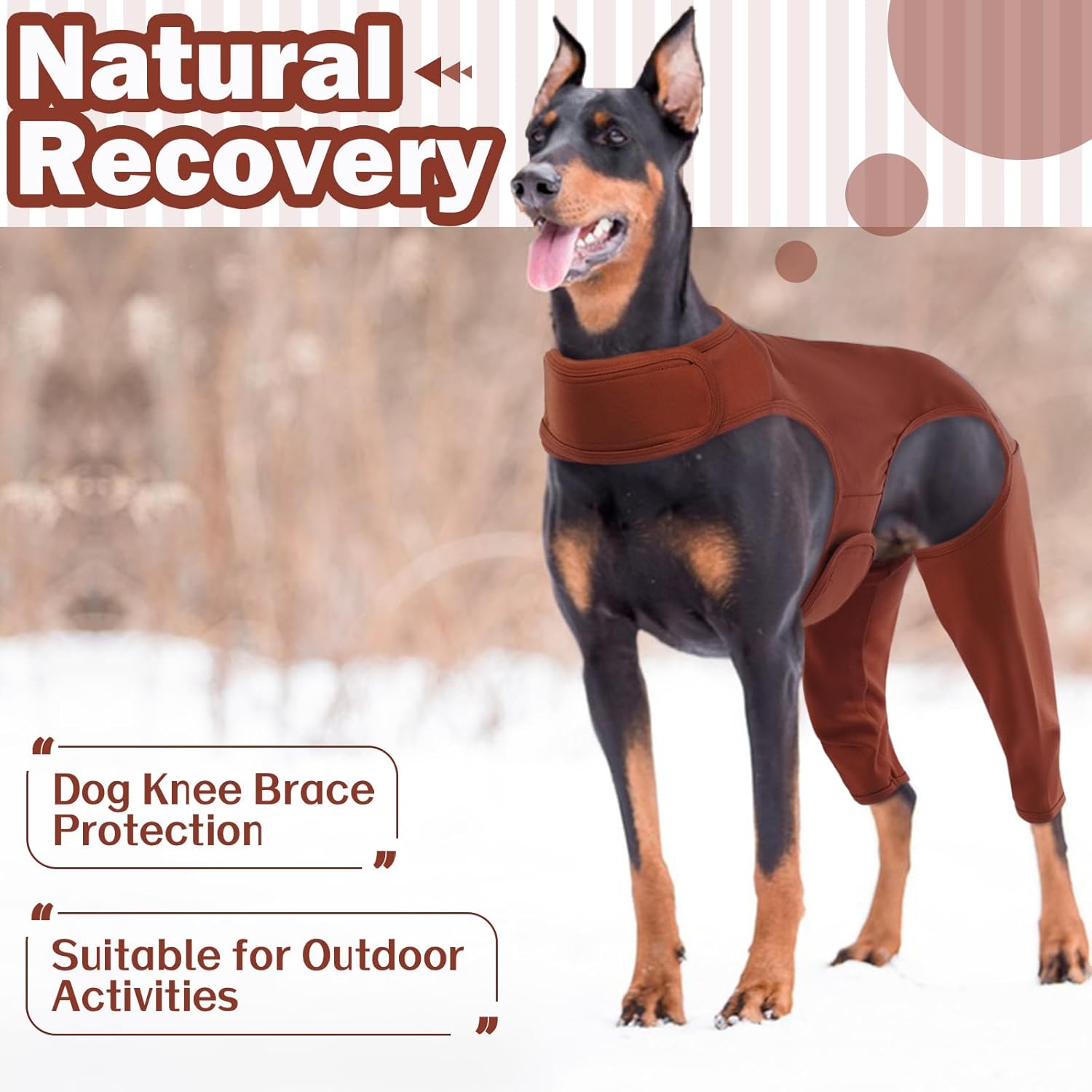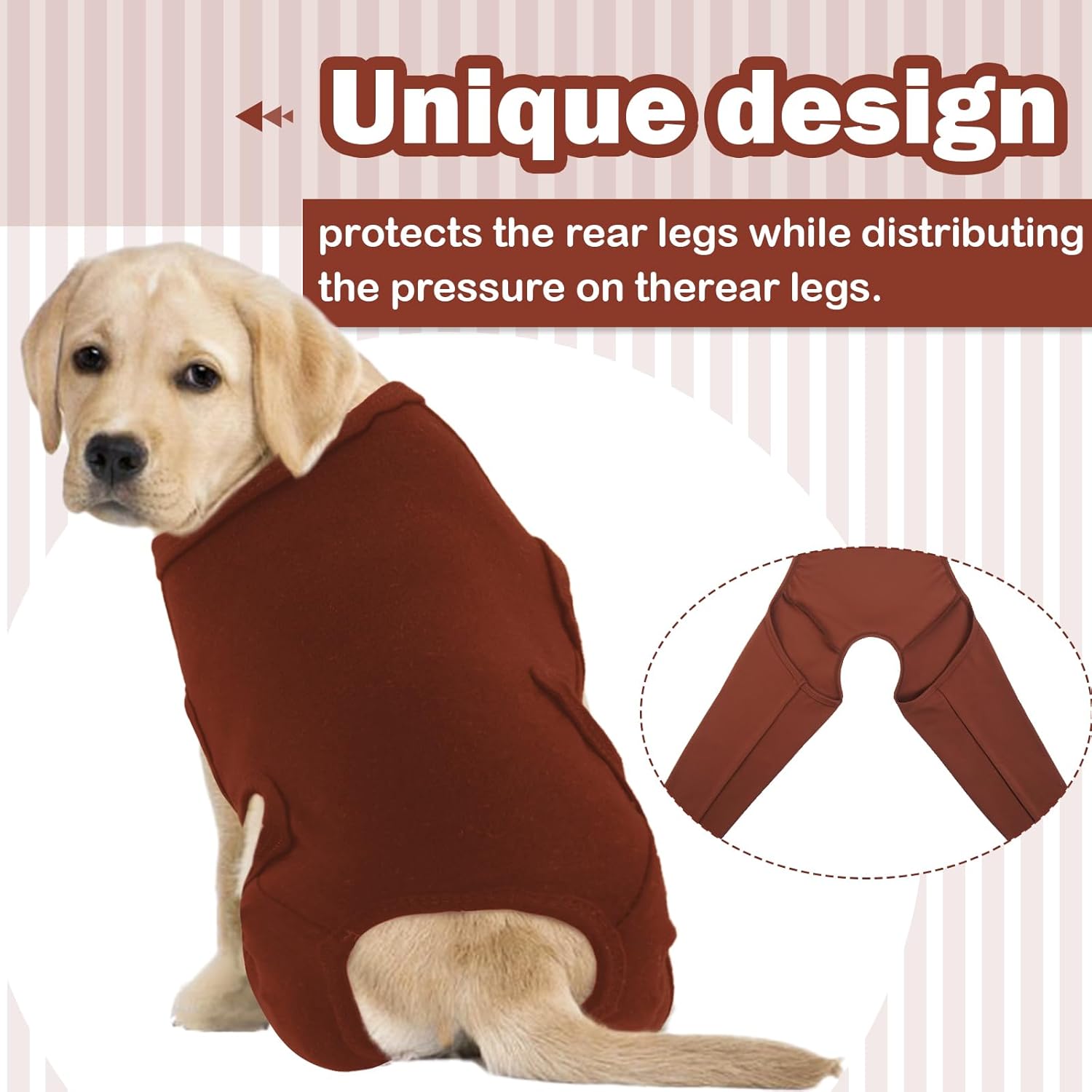 • Цялостна защита: Нашият костюм е експертно проектиран да предпази кучето ви от облизване на рани по краката, хирургични разрези или следоперативни зони. При някои кучета и двете колена се ремонтират едновременно – нашият костюм осигурява защита и за двата задни крака.