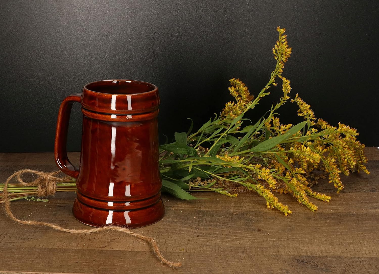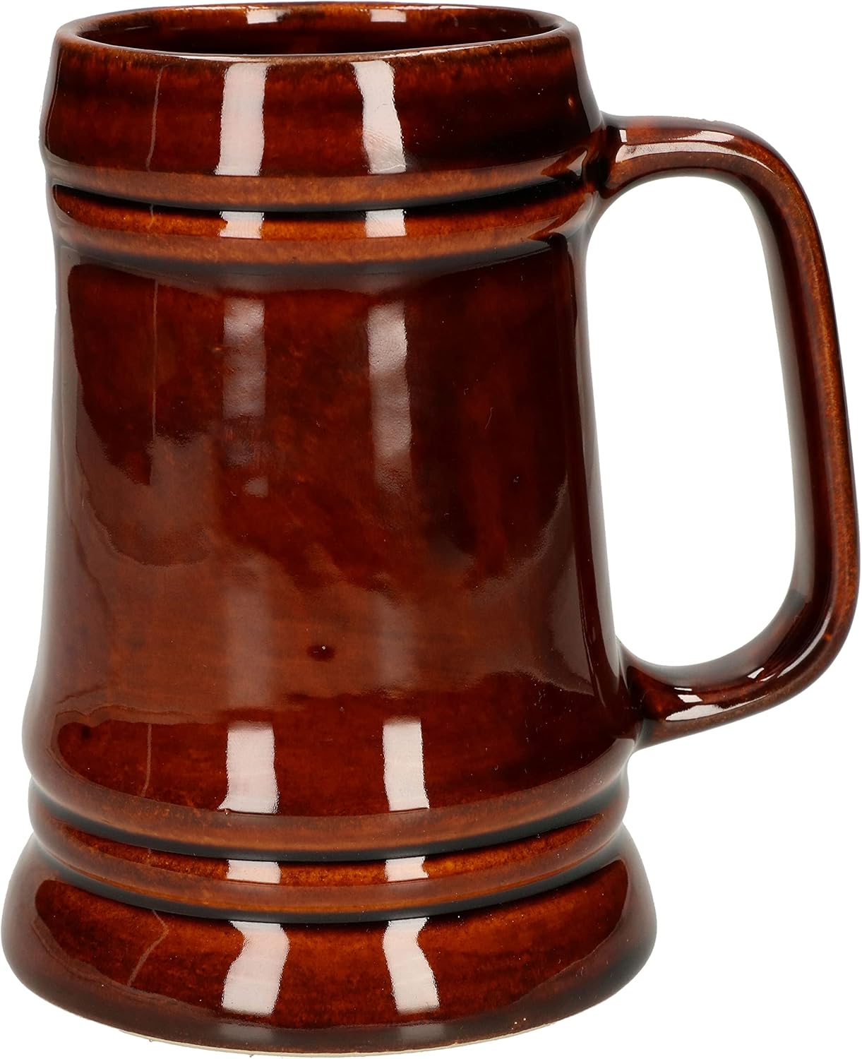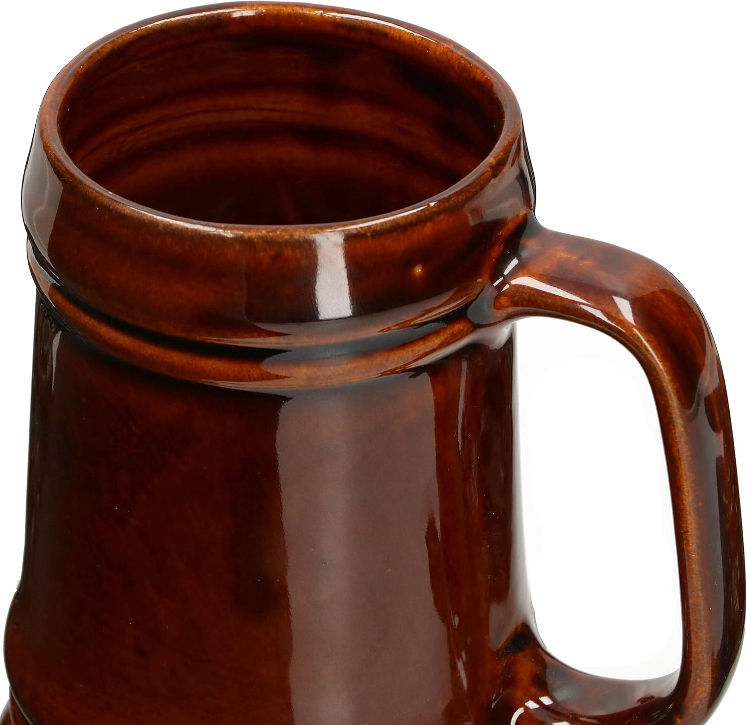 • ТЕХНИЧЕСКИ ДАННИ - Халба за бира 0.5 л - Височина: 150 мм, Диаметър на основата: 105 мм, Диаметър: 70 мм, Дължина на дръжката: 95 мм, Материал: Керамика, Тегло: 582 г, Вместимост: 0.5 л, Цвят: Кафяв