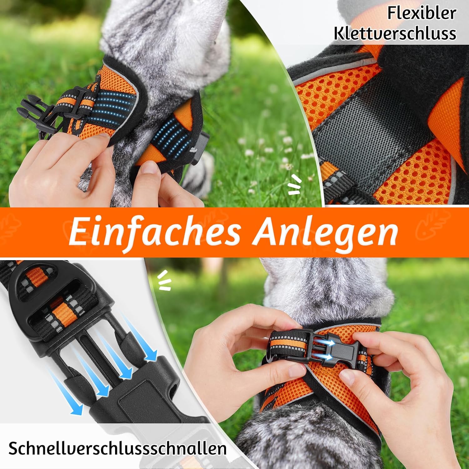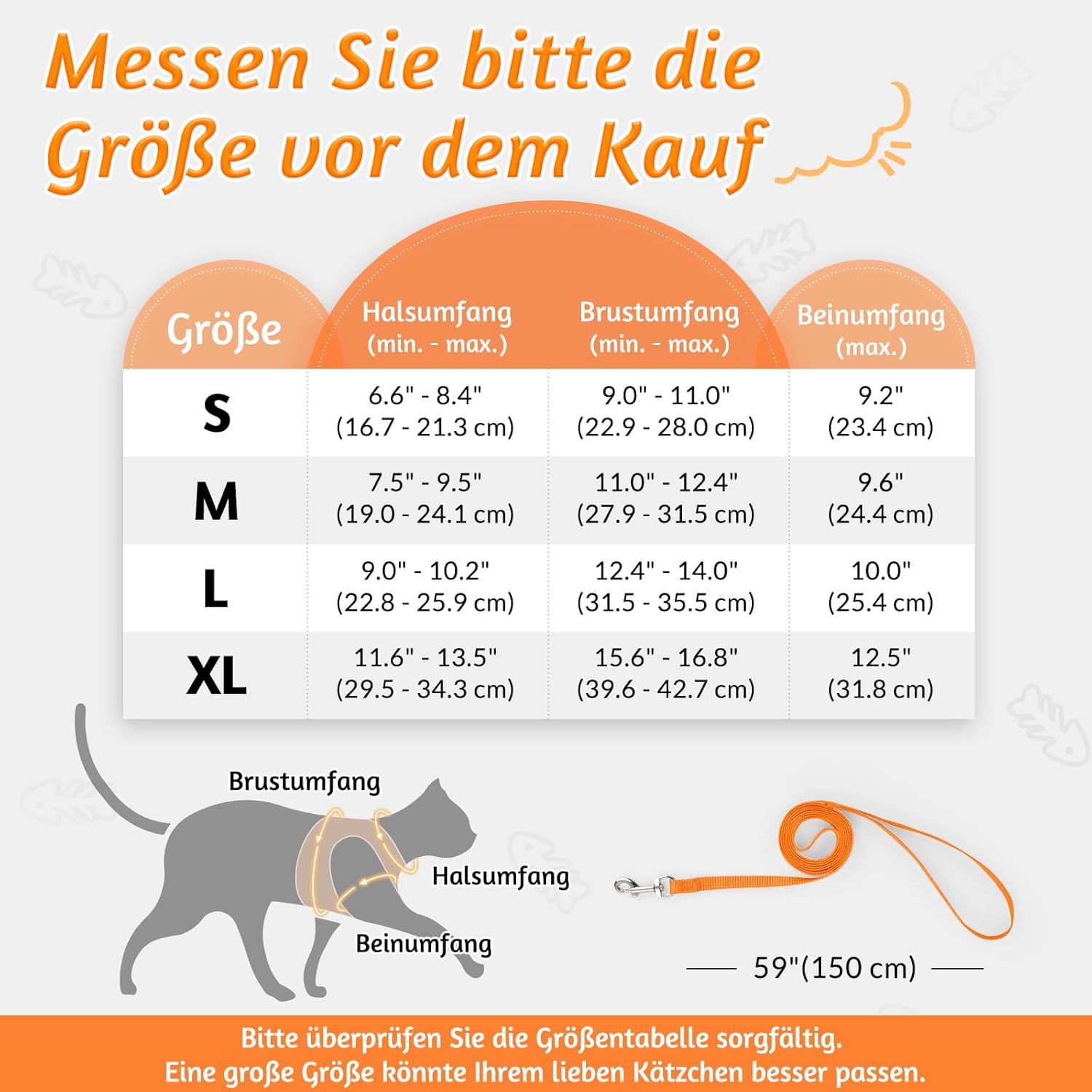 ПАСВА ПЕРФЕКТНО ЗА ВРАТА 17-21 СМ ГЪРДЕН КРЪГ 23-28 СМ Моля, измерете точно котката си и внимателно изберете нагръдник според таблицата с размери. За по-добро прилягане на вашето очарователно котенце се препоръчва да изберете по-голям размер. Комплектът включва: 1 x нагръдник за котки и 1 x найлонова каишка (149,9 см). Създаден за комфорт и функционалност, дизайнът на жилетката прави този нагръдник лесен за поставяне и сваляне. А регулируемата каишка създава перфектно прилягане за вашата котка с известно пространство за растеж. (Съвети: моля, дайте на котката си известно време да се запознае с този нагръдник за първи път)