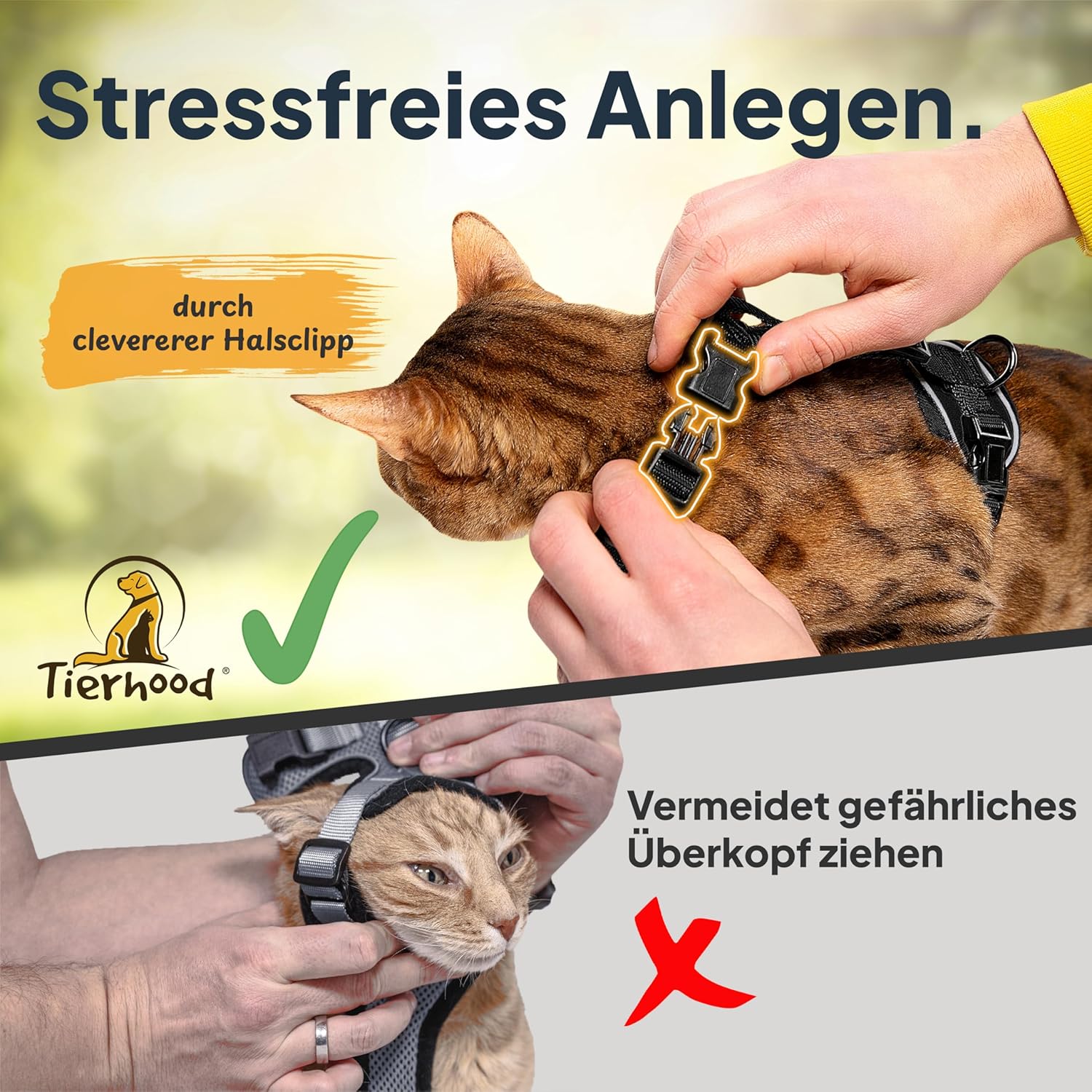 • С котешки поводи 1,4 м: в комплекта нагръдник е включен изключително по-дългият избран повод за котки. Подплатеният изключително по-дълъг избран повод за котки с дължина 1,2 м е включен в комплекта нагръдник за удобно захващане при ходене. Подплатеният повод осигурява удобен захват и добро водене.