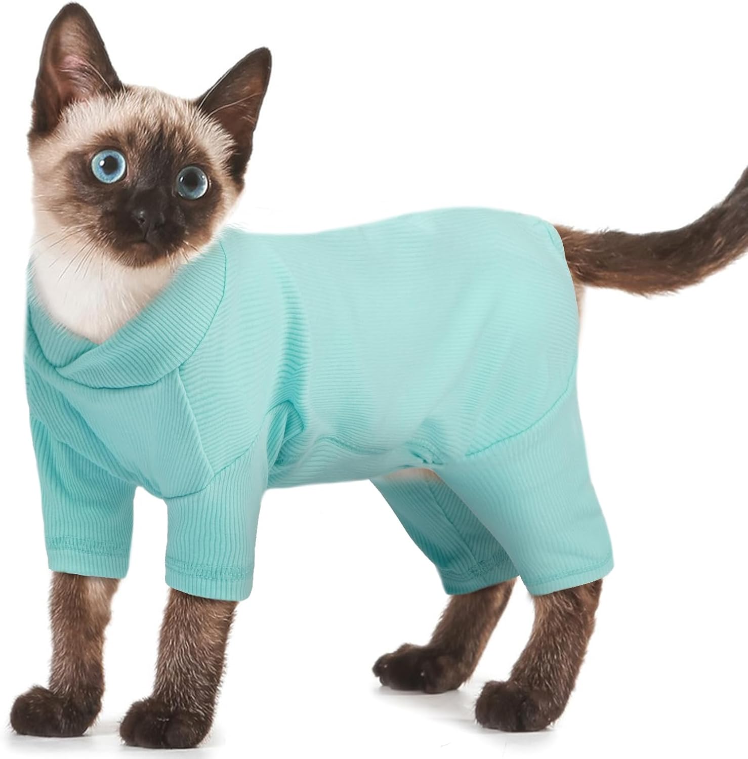 • Меки и удобни: дрешките за котки са изработени от полиестер, леки, меки, дишащи, щадящи кожата и антиалергични. Високоеластичната пижама за котки нежно обгръща тялото на вашата котка и позволява неограничена свобода на движение. Тя ви държи топли в студените дни и нощи. Подходяща е за котки от всякакъв размер.