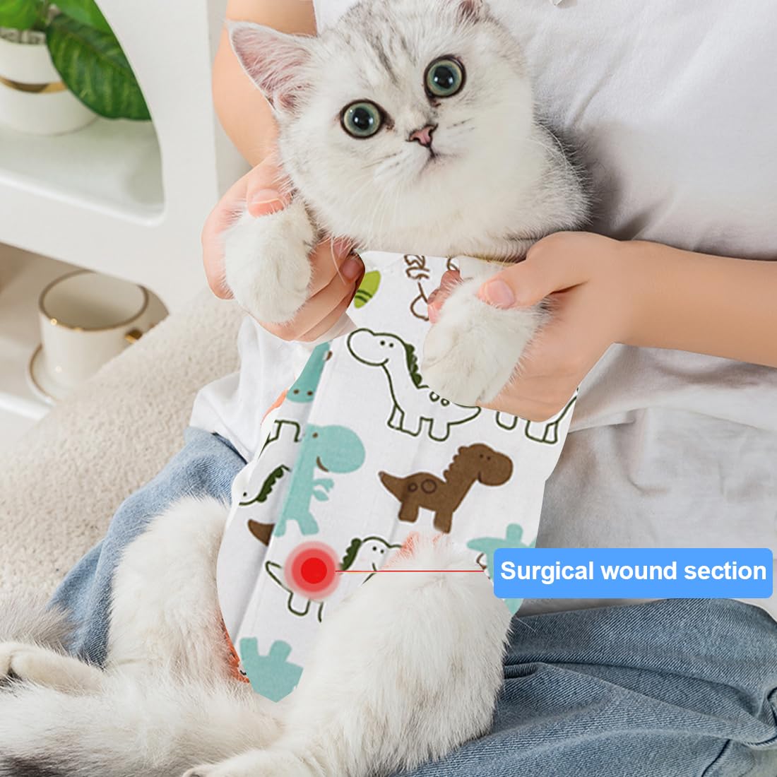 Лесен за употреба дизайн - Оборудван с еластична лента за врата и велкро закопчаване, този котешки боди позволява лесно обличане и събличане без стрес за вашия домашен любимец.