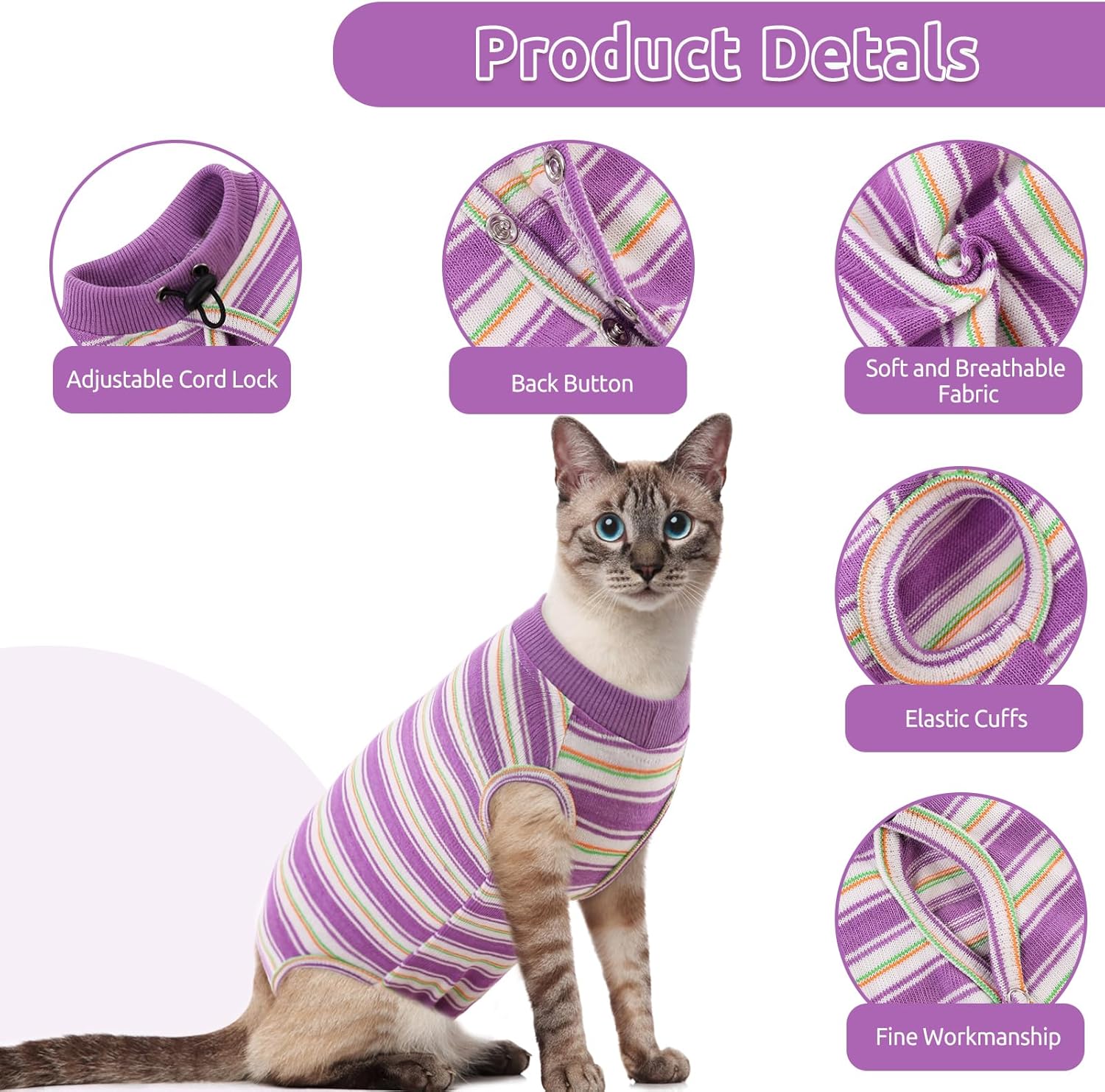 Котешки боди след операция, следоперативни котешки дрехи за коремни рани, дрехи за възстановяване след операция, алтернатива на електронната каишка за котки и кучета, лилав, размер L