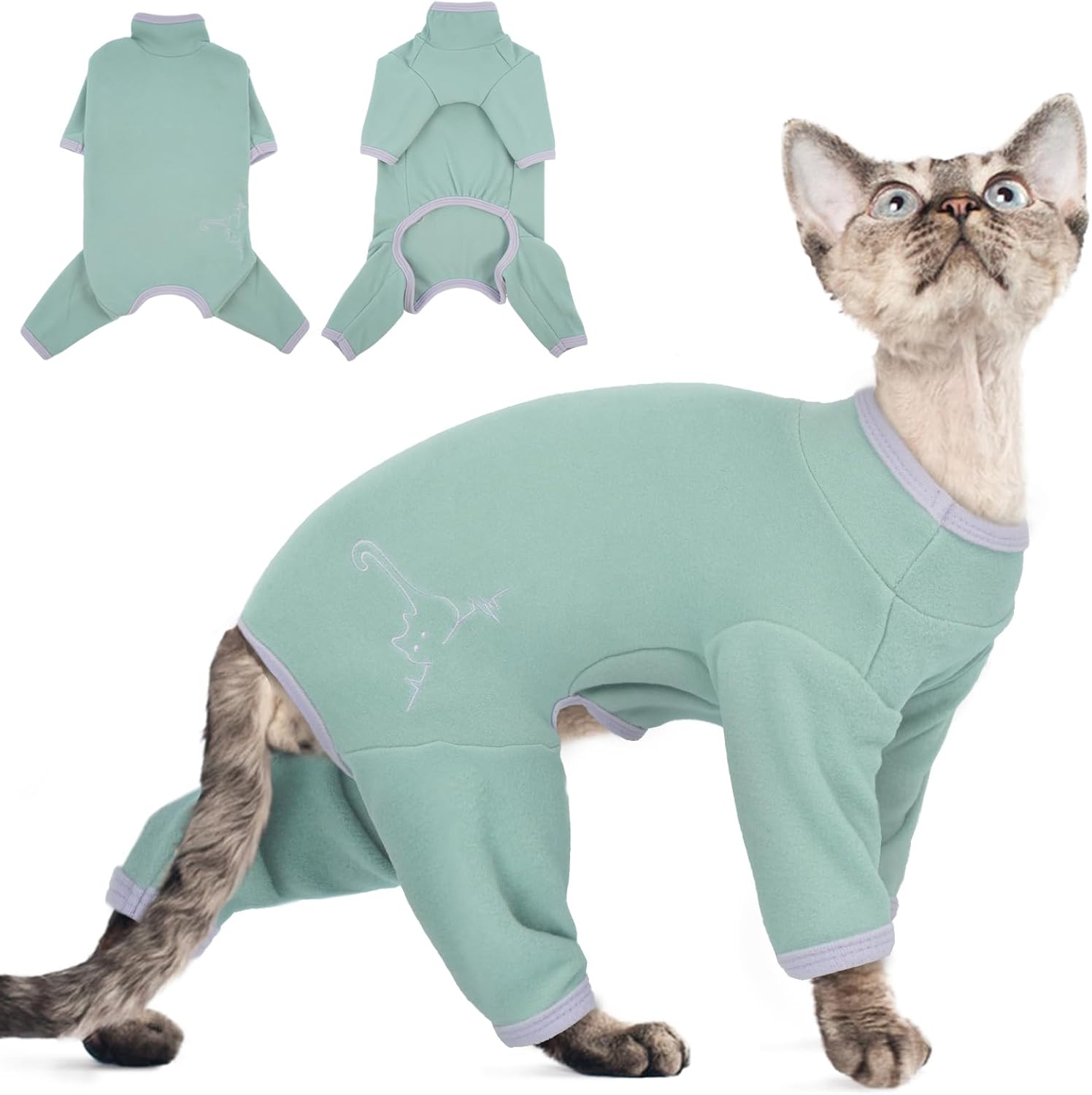 Котешки гащеризон, Котешко яке, Зимно котешко боди с крачета, Котешко боди за котки, Хирургично облекло, Дрехи за котки сфинкс (зелен боб, L)
