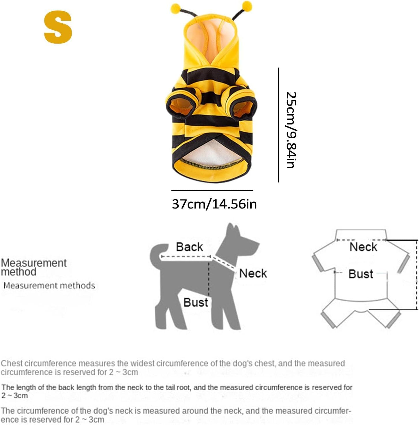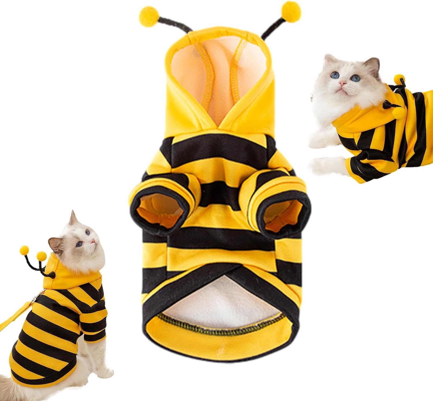 • Стилен дизайн: костюмът е с жълт раиран дизайн с пчелни мотиви, което придава на вашата котка стилен и забавен вид