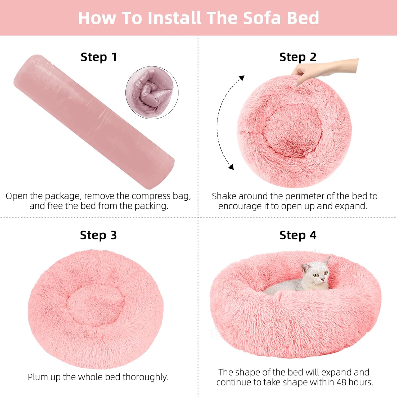 When you open the packaging of the pet bed, you will find that it has been compressed, it does not match the picture. But don't worry. Simply wash the pet bed by hand or wash it with a washing machine, and then dry it to restore its full shape as shown in the picture (it can be dried with a dryer or natural sunlight), shake it and leave it for 1-2 days as it is made of soft polyester filling with plenty of padding that makes the dog or cat bed fluffier.