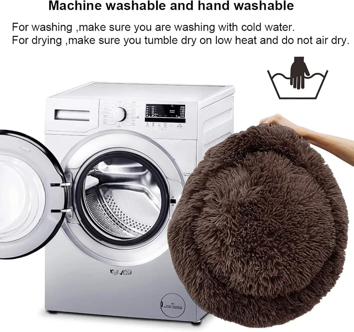 When you open the packaging of the pet bed, you will find that it has been compressed, it does not match the picture. But don't worry. Simply wash the pet bed by hand or wash it with a washing machine, and then dry it to restore its full shape as shown in the picture (it can be dried with a dryer or natural sunlight), shake it and leave it for 1-2 days as it is made of soft polyester filling with plenty of padding that makes the dog or cat bed fluffier.