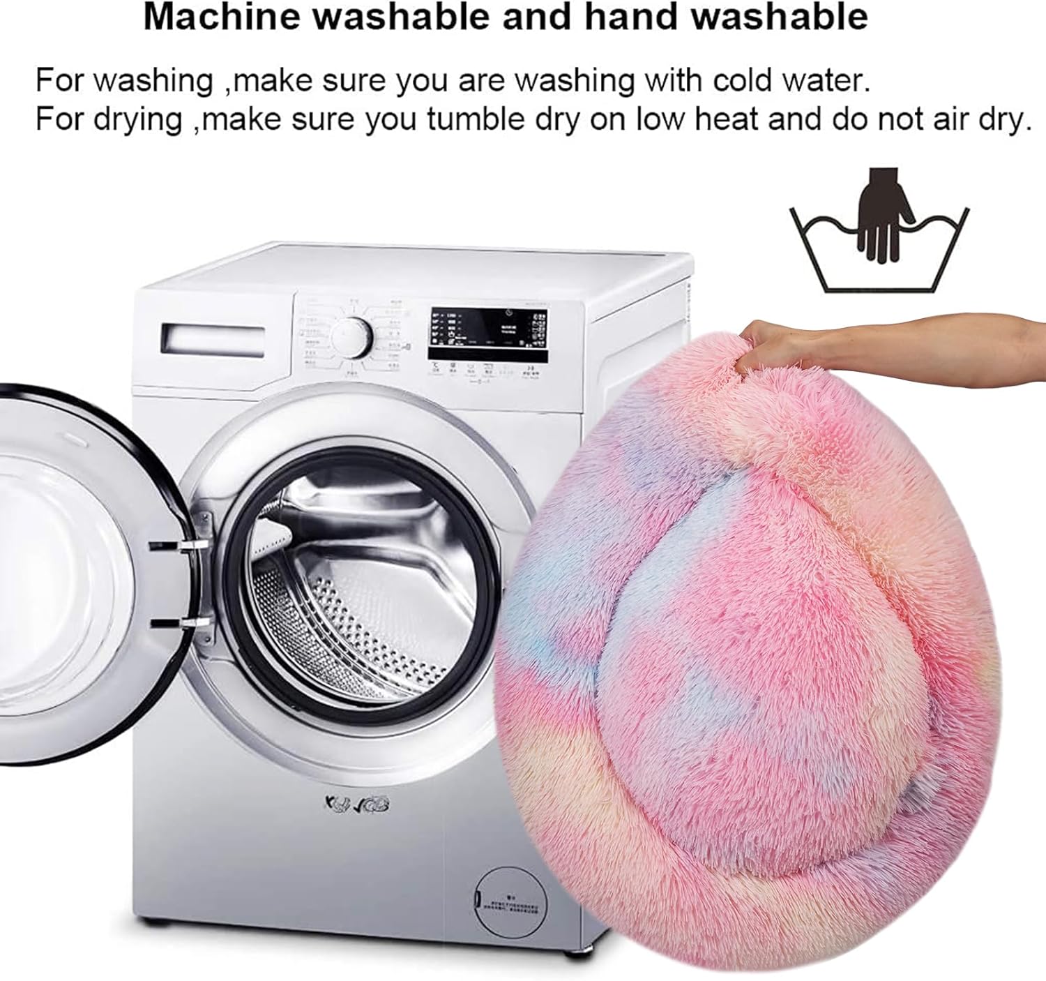 When you open the packaging of the pet bed, you will find that it has been compressed, it does not match the picture. But don't worry. Simply wash the pet bed by hand or wash it with a washing machine, and then dry it to restore its full shape as shown in the picture (it can be dried with a dryer or natural sunlight), shake it and leave it for 1-2 days as it is made of soft polyester filling with plenty of padding that makes the dog or cat bed fluffier.