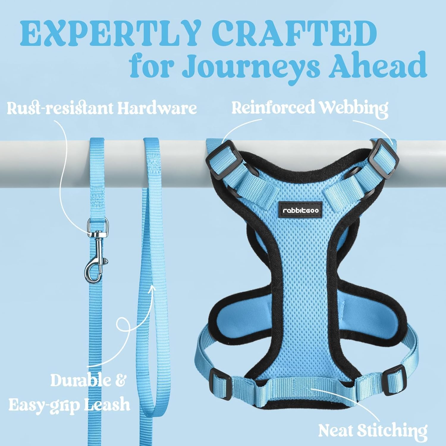 Котешки нагръдник rabbitgoo с каишка, мек нагръдник за котки, нагръдник, котешки нагръдник, защитен от бягство, регулируем котешки жилет, светлосин, M