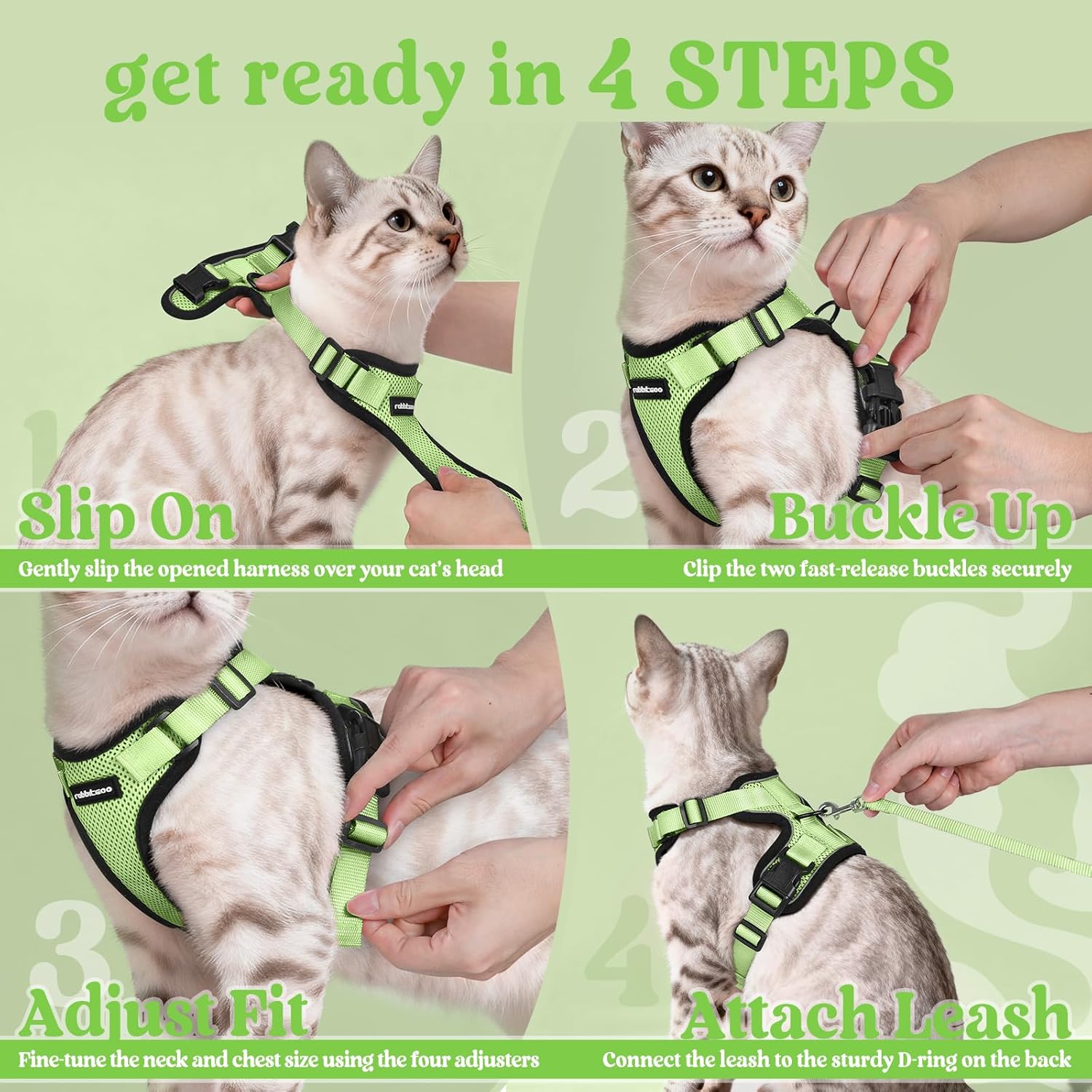 Котешки нагръдник rabbitgoo с каишка, мек нагръдник за котки, нагръдник, котешки нагръдник, защитен от бягство, регулируем котешки жилет, светлозелен, XXS