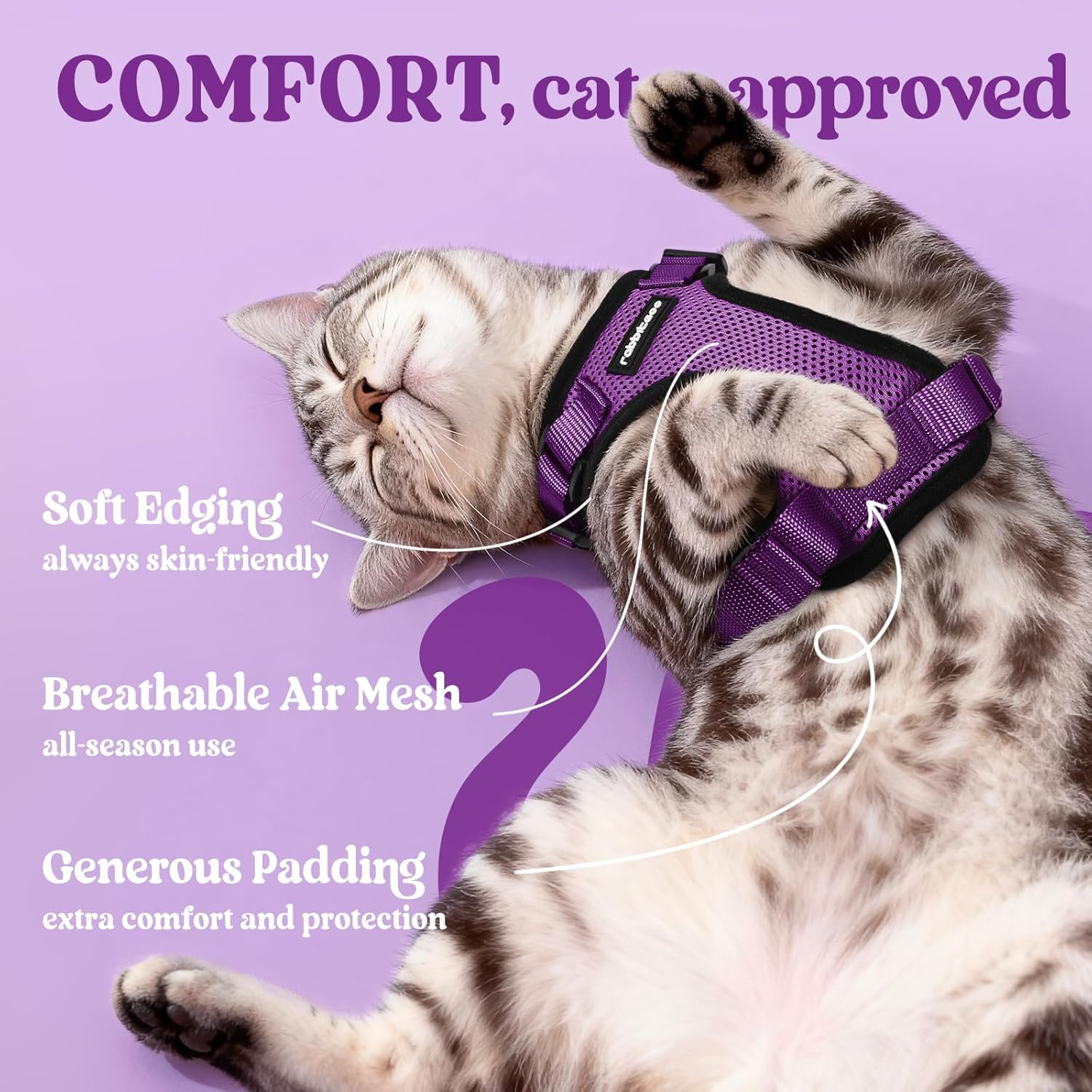 Котешки нагръдник rabbitgoo с каишка, мек нагръдник за котки, нагръдник, котешки нагръдник, защитен от бягство, регулируем, лилав, M