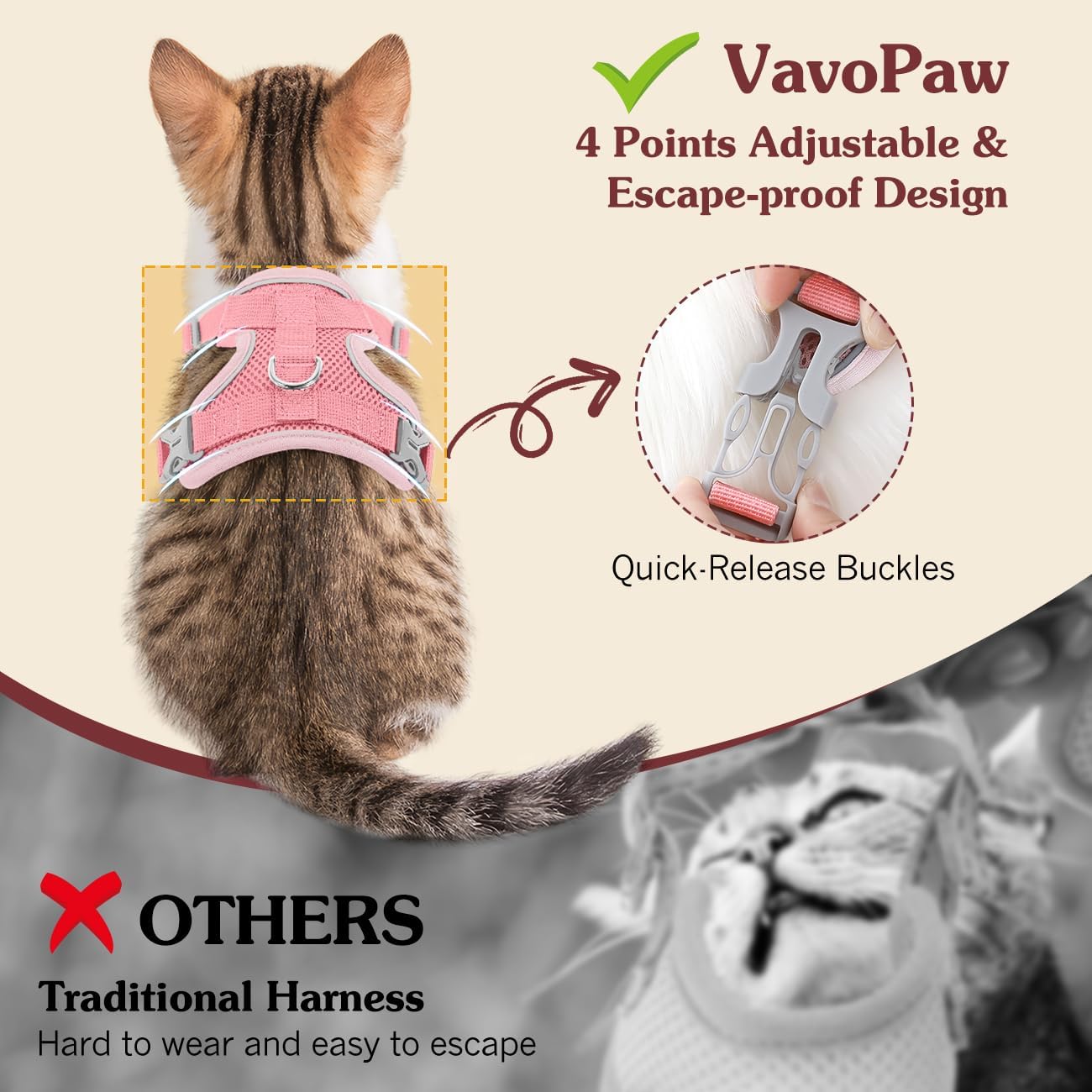 • По-безопасно и лесно за управление: светлоотразителните ленти са предназначени да гарантират безопасността на дейностите на вашата котка на открито през нощта. Към повода може да се прикрепи регулируем нагръдник за котенца с 2 здрави D-образни пръстена, което улеснява воденето на домашния любимец, предотвратява бягството му и осигурява свобода на движение. Дизайнът на жилетката разпределя налягането на повода равномерно по гърдите и раменете, за да предотврати задавяне или напрежение във врата.