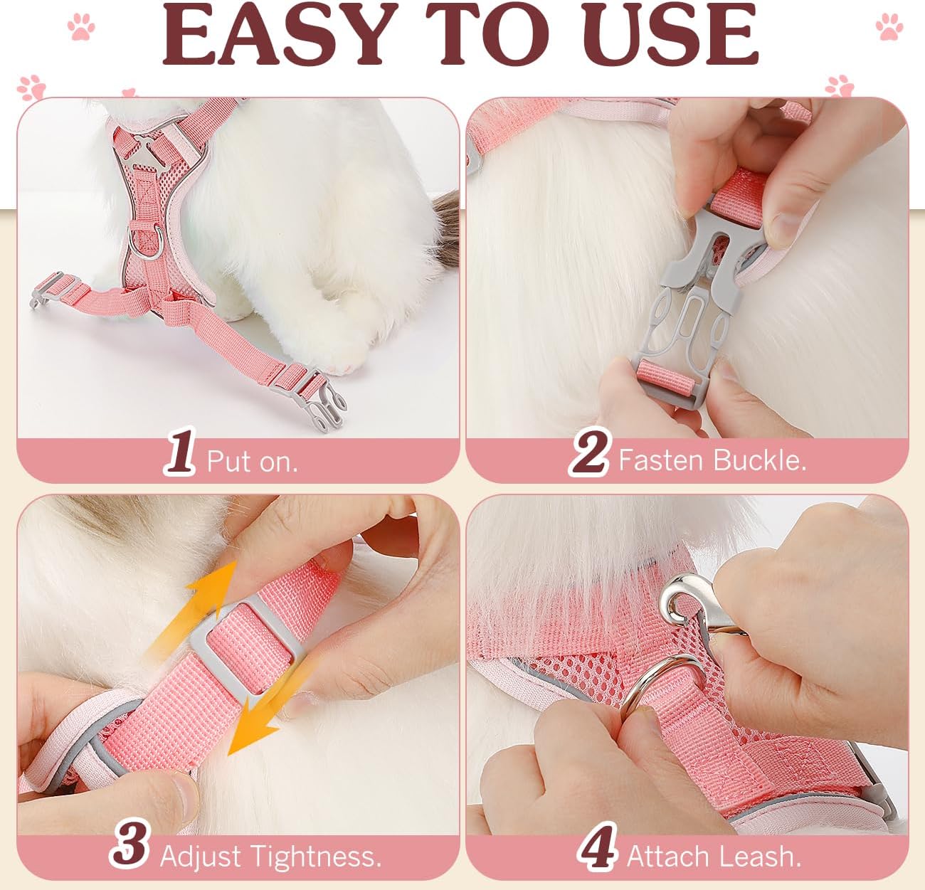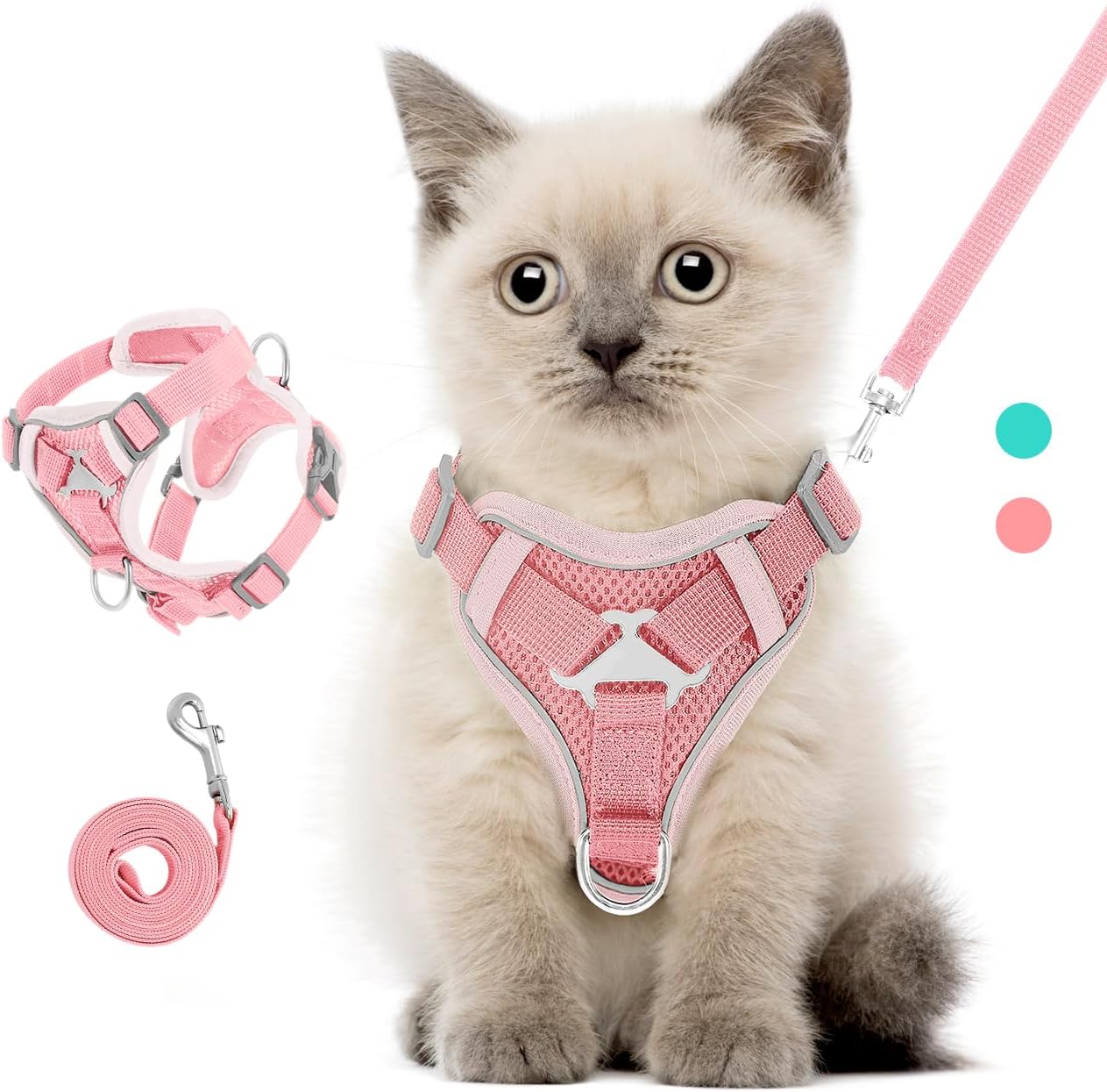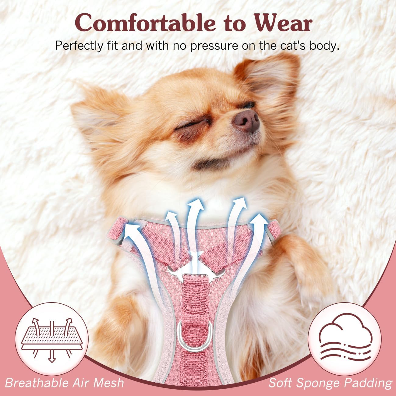 Котешки нагръдник с каишка, Защита от бягство, Регулируем нагръдник за котки със светлоотразителни ленти и дишаща мрежа, Мек нагръдник за котки, котенца, кученца, XL, Розов