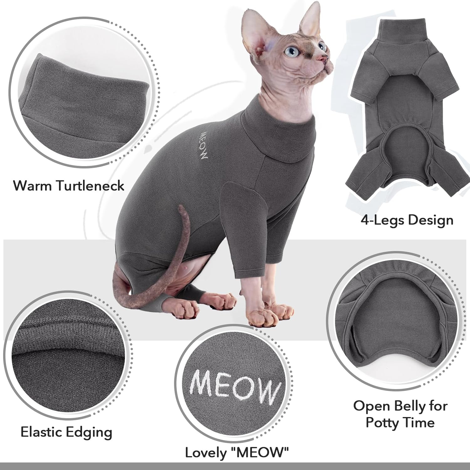 Дизайн с 4 крака – Дрехи за котки от породата Сфинкс с 4 крака и ластик под корема за перфектно прилягане.