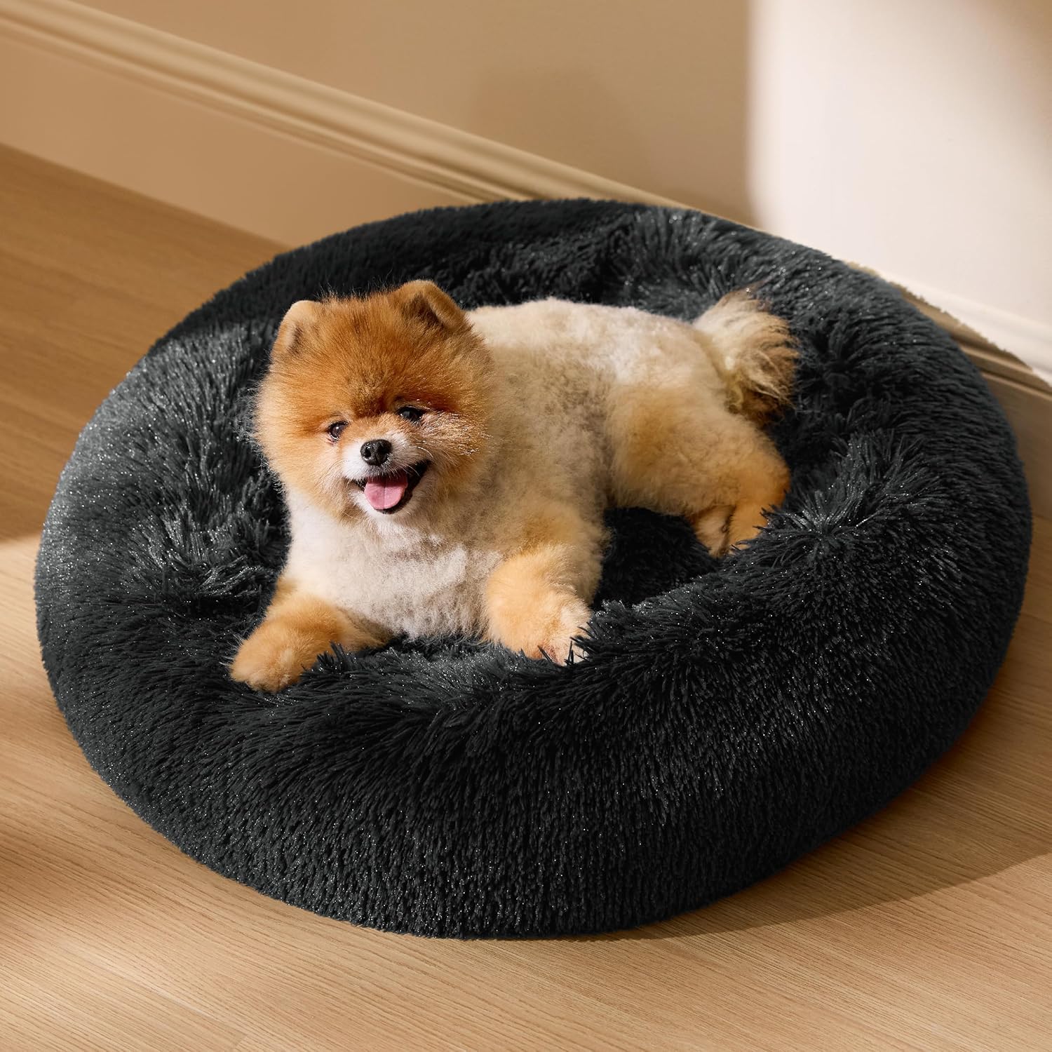 Котешко легло Bedsure, Може да се пере, Пухкаво котешко легло – Диаметър 60 см, Място за спане на котки и малки кучета, Плюшена котешка възглавница, Кръгло, Гушкаво легло, Тъмносиво