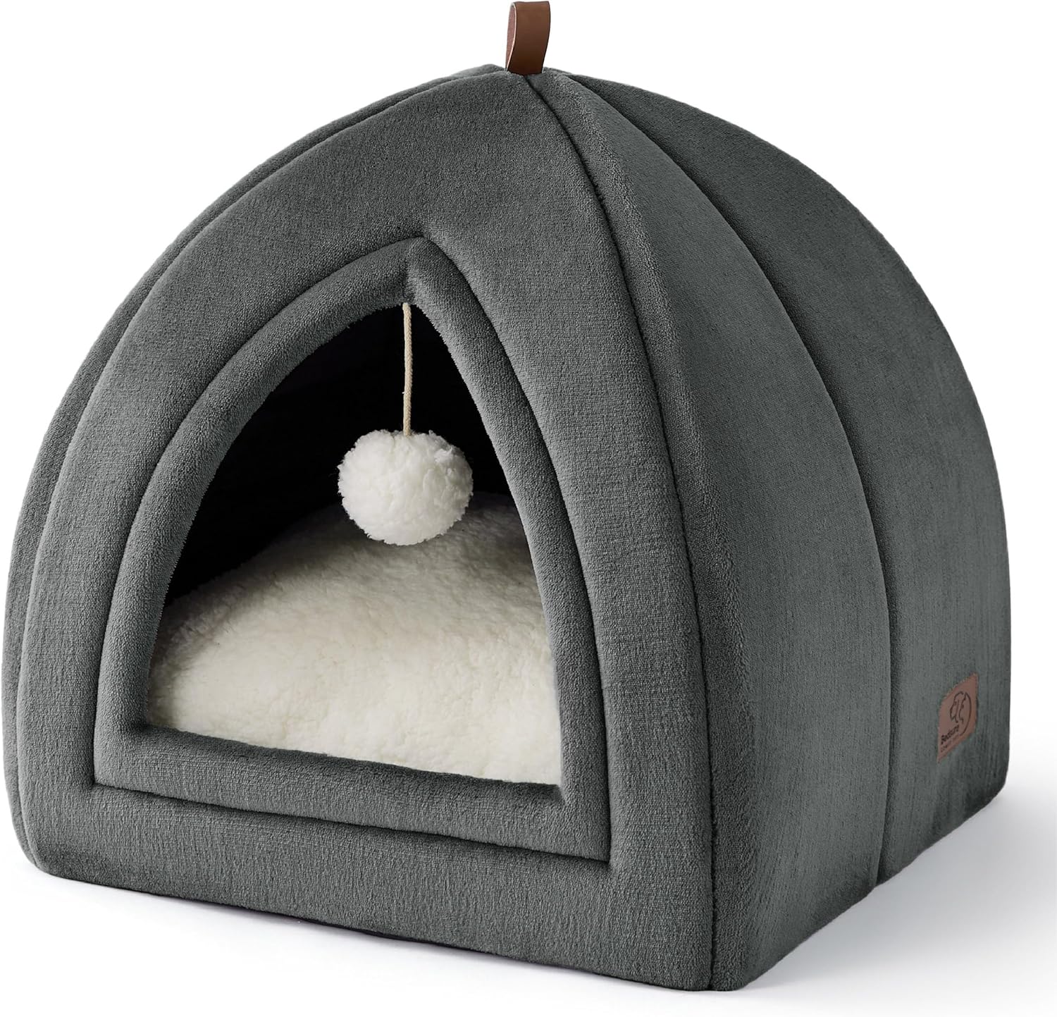 Котешко легло Bedsure със супер мека пухкава вътрешна възглавница от шерпа (переща се), 35 x 35 x 38 см (Д x Ш x В), Палатка за котки, Кошница за спане, За малки до средни котки