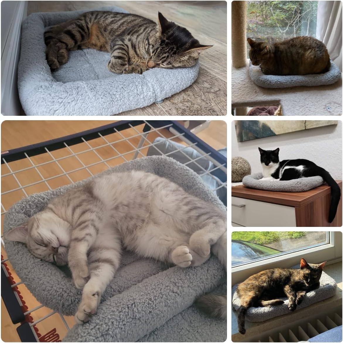 Котешко легло Namsan, Кучешко легло, Мека котешка възглавница, Плюшена нагревателна постелка за малки кучета, котки, зайци, Сиво