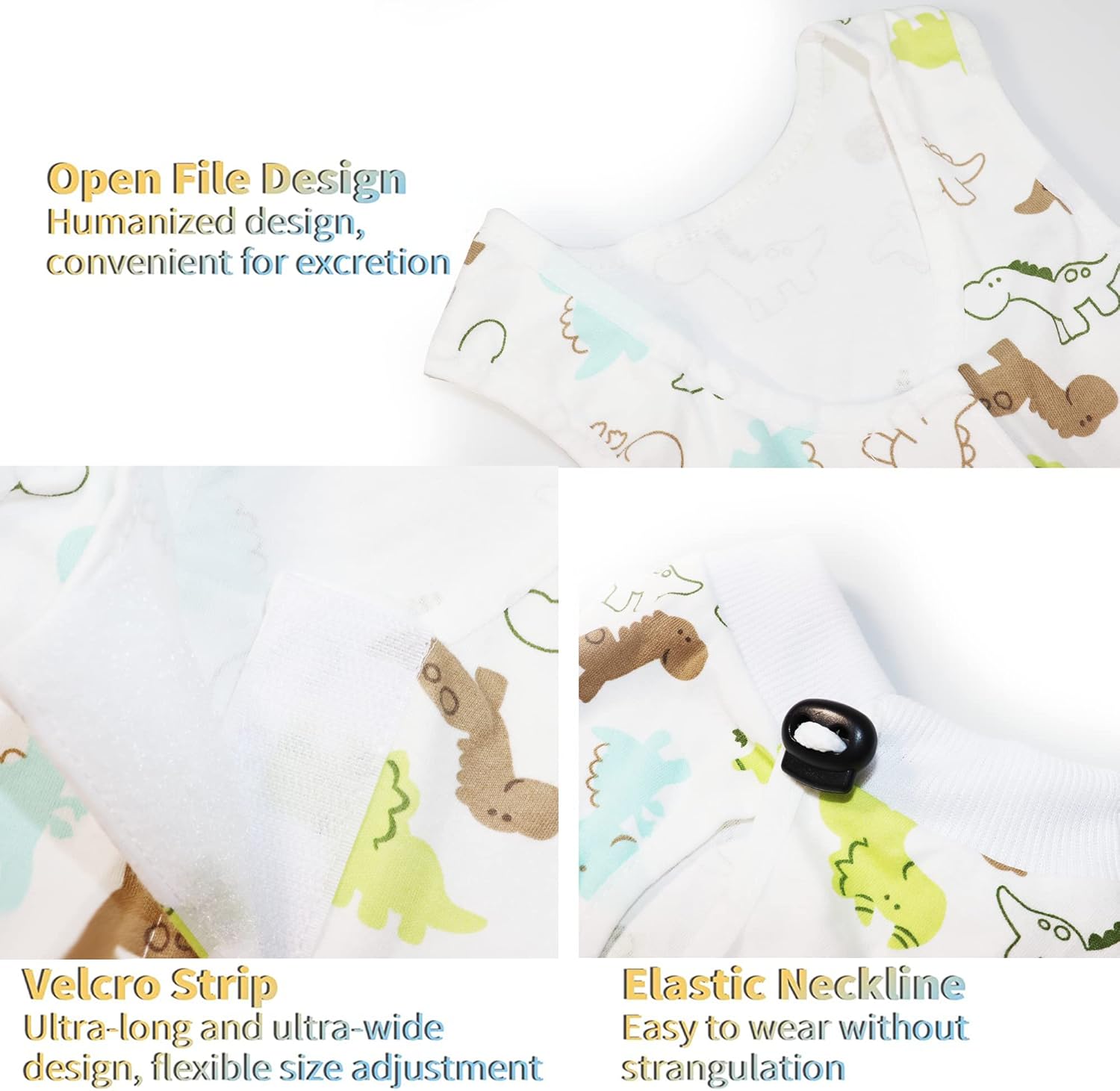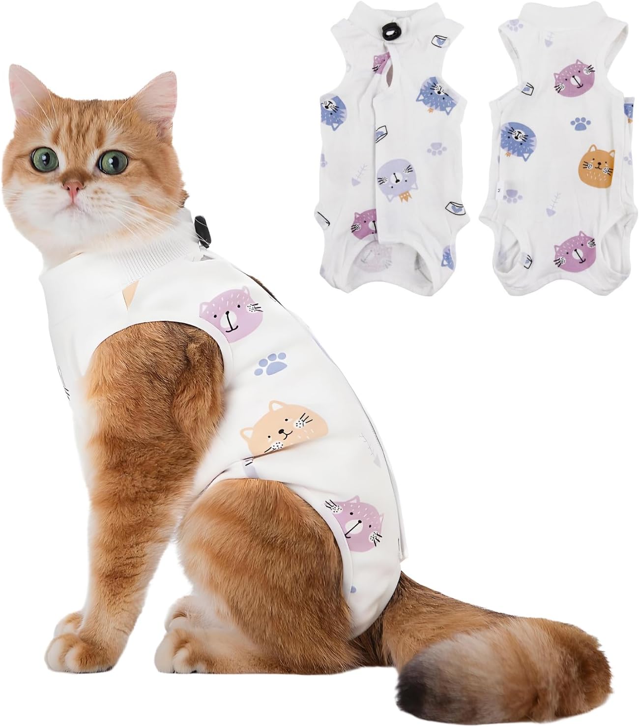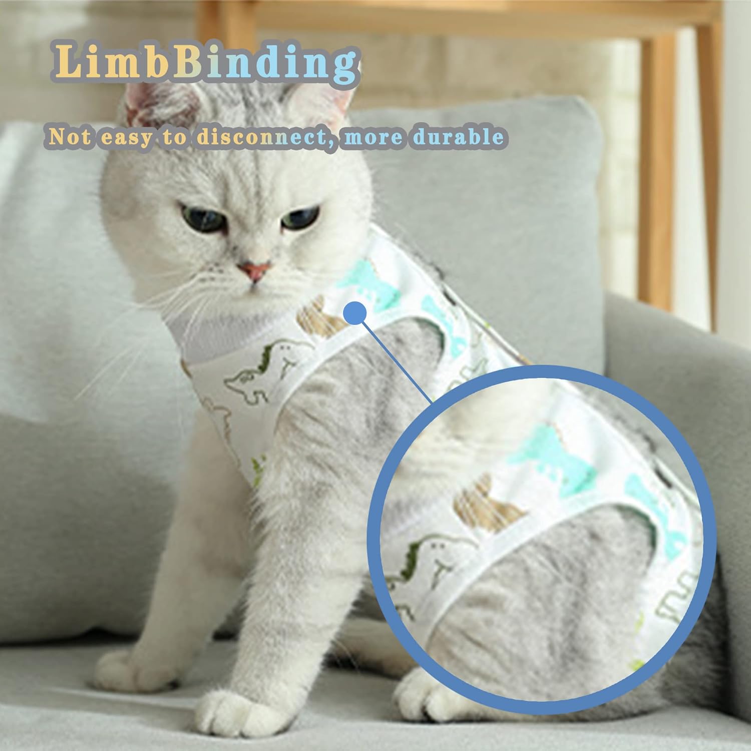 • Лесно обличане: Дрехите за котки за възстановяване имат изключително дълго и широко велкро закопчаване, което позволява удобно регулиране на размера. Еластичната лента за врата е лесна за обличане. Краищата на дрехата имат прецизен дизайн, който гарантира, че краката на котката ви няма да се изплъзнат лесно, а дизайнът е по-издръжлив.