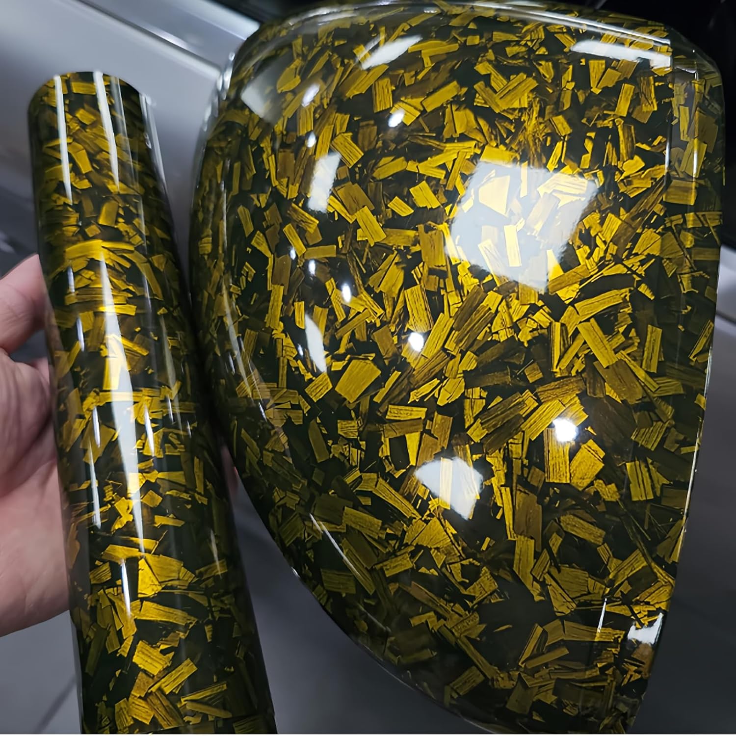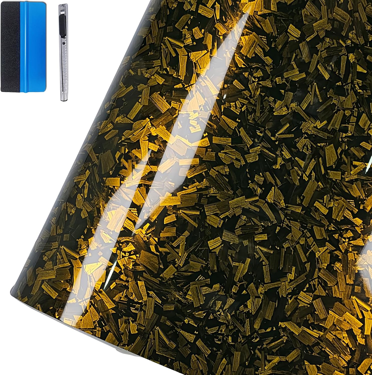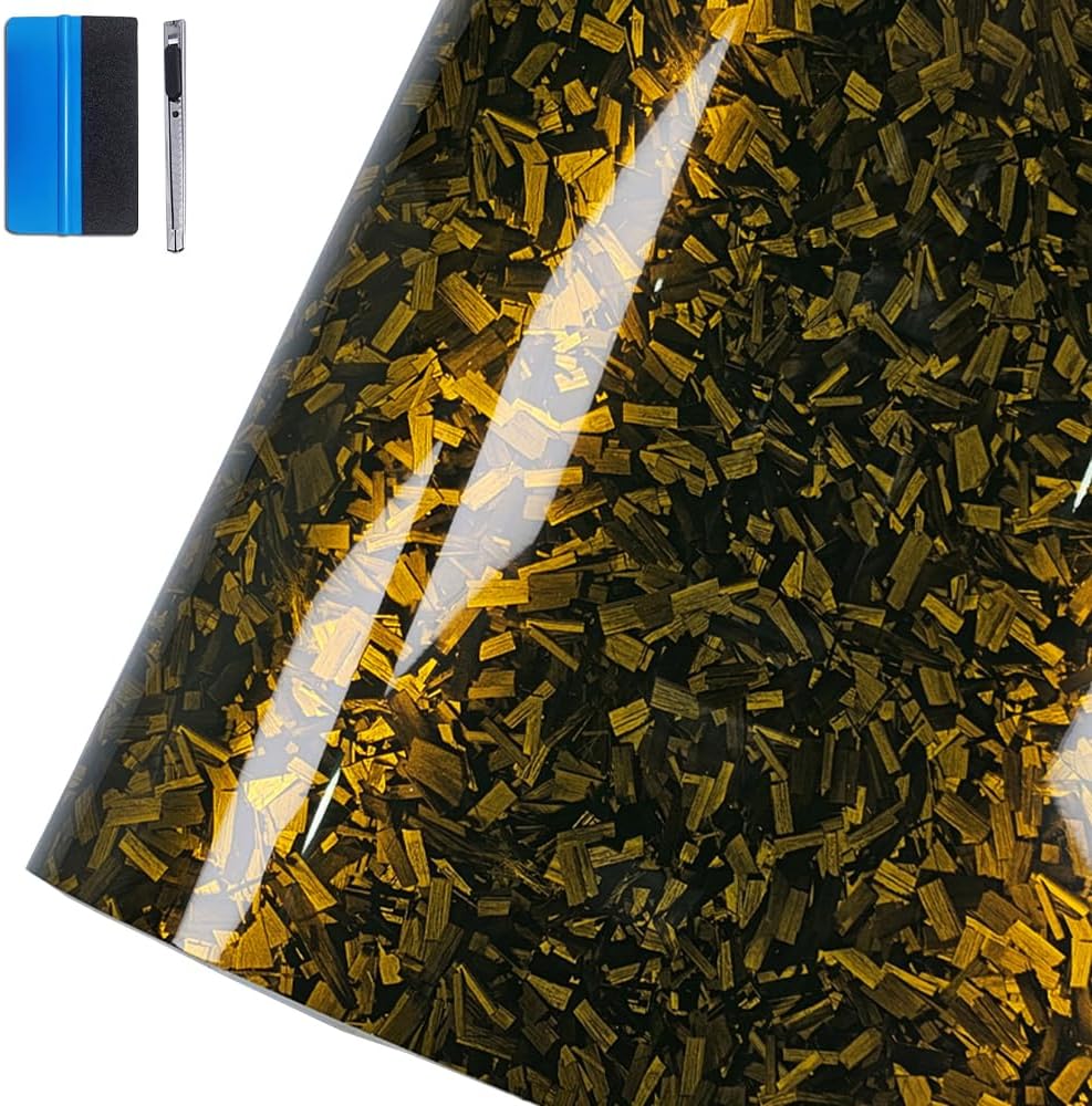 Ковани винилови стикери от въглеродни влакна с гланцово златисто покритие, отделящи се с въздух, самозалепващи се, 30 x 100 см